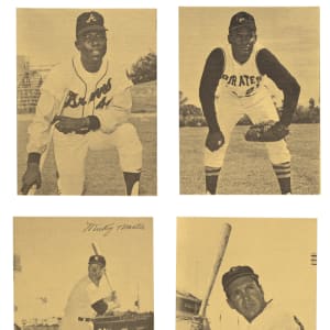 Complete set of 1977 Sertoma Stars. Condition is 75% Nr/Mt to Nr/Mt-Mt and 25% Ex to Ex-Mt. Keys: Aaron (Nr/Mt-Mt), Clemente (Ex+), Mantle (Nr/Mt), B. Robinson (Nr/Mt+), and F. Robinson (Nr/Mt). Total: 24 cards.