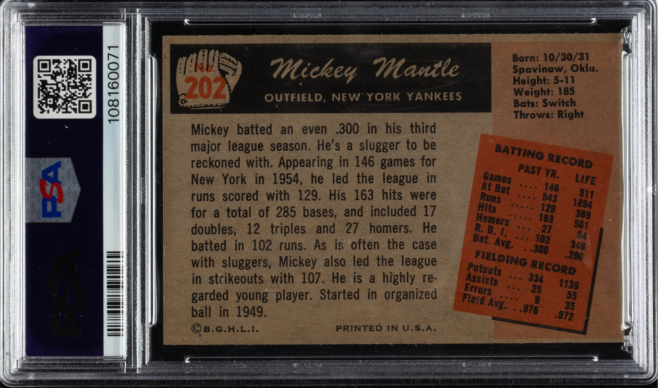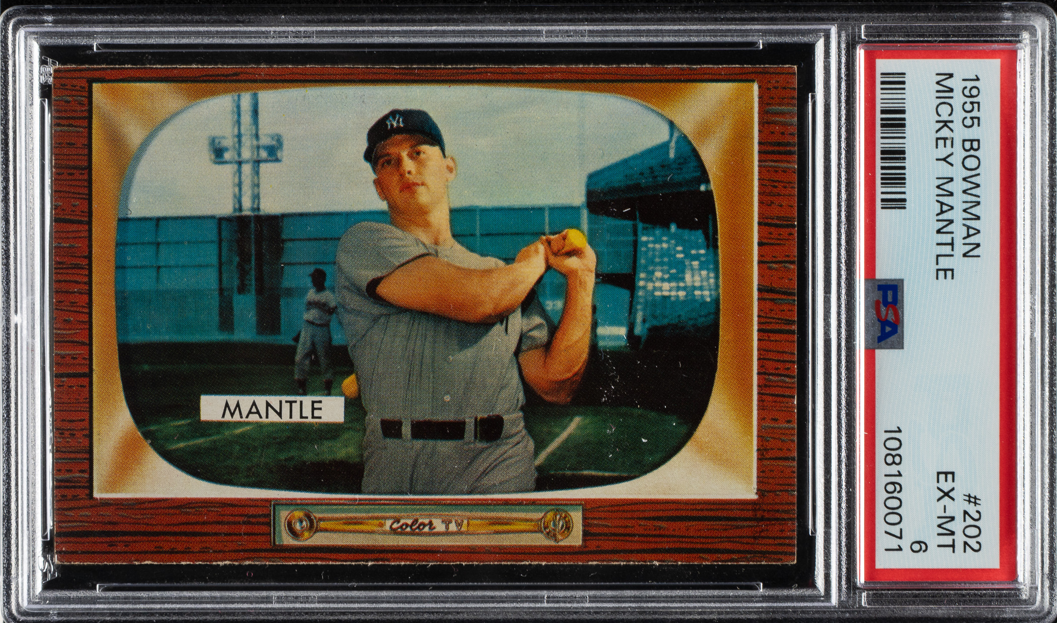 Lot # 1609: 1955 Bowman #202 Mickey Mantle PSA EX-MT 6