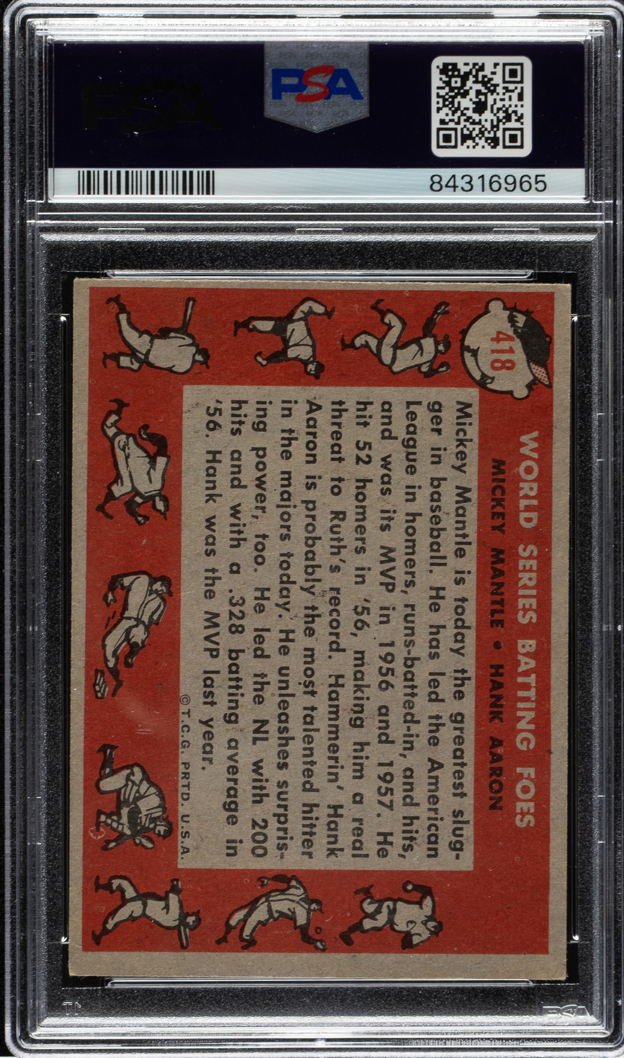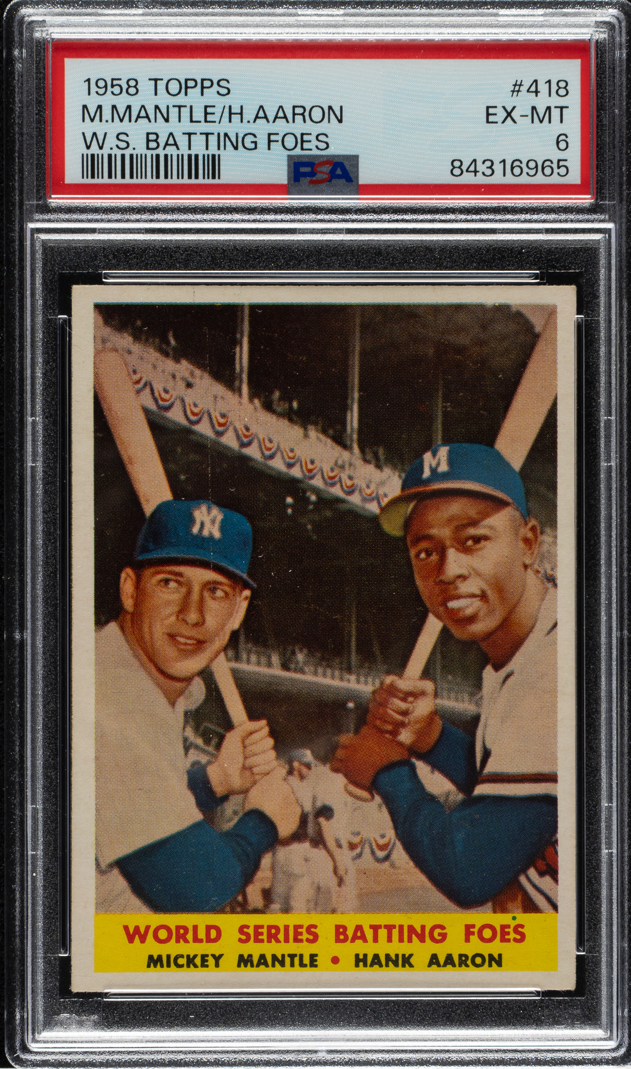 Graded EX-MT 6 by PSA. New York Yankees and Milwaukee Braves Hall of Famer Mickey Mantle and Hank Aaron.