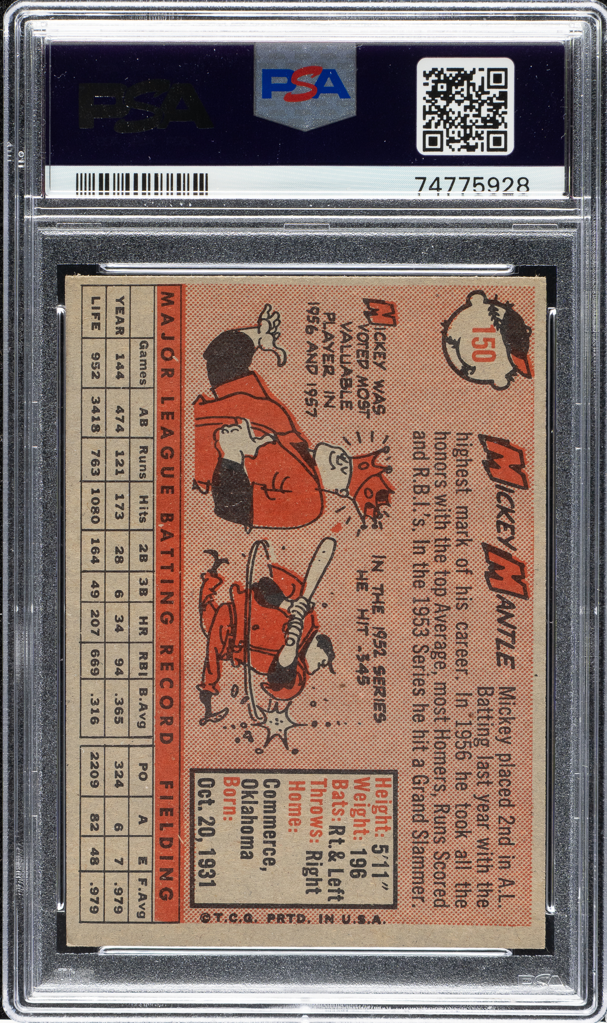 Lot # 1732: 1958 Topps #150 Mickey Mantle PSA EX-MT+ 6.5