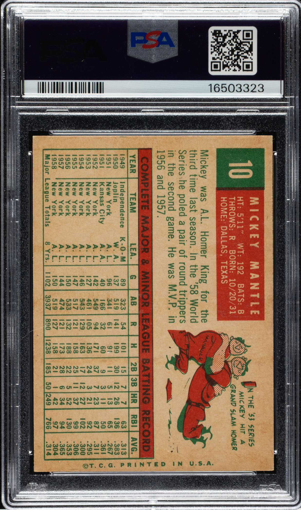 Graded EX-MT 6 by PSA. New York Yankees Hall of Famer Mickey Mantle.