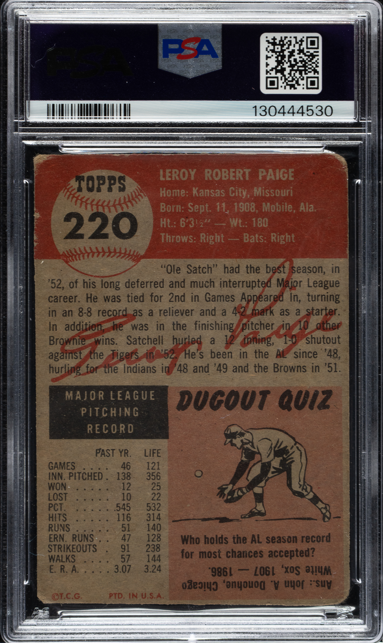 Graded Authentic by PSA. St. Louis Browns Hall of Famer Satchel Paige.
