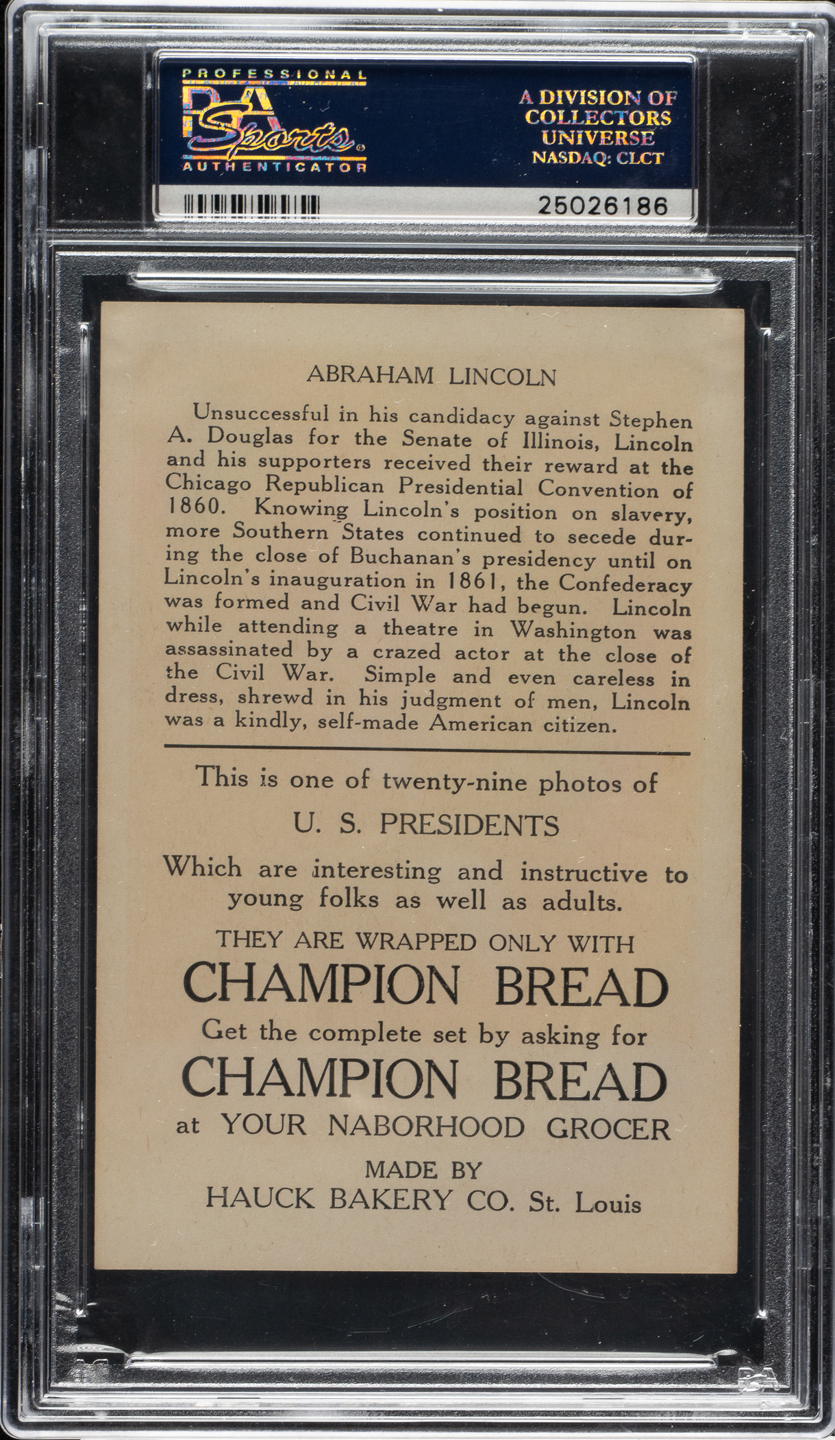 Lot # 3333: 1920 D147 U.S. Presidents Abraham Lincoln PSA NM 7