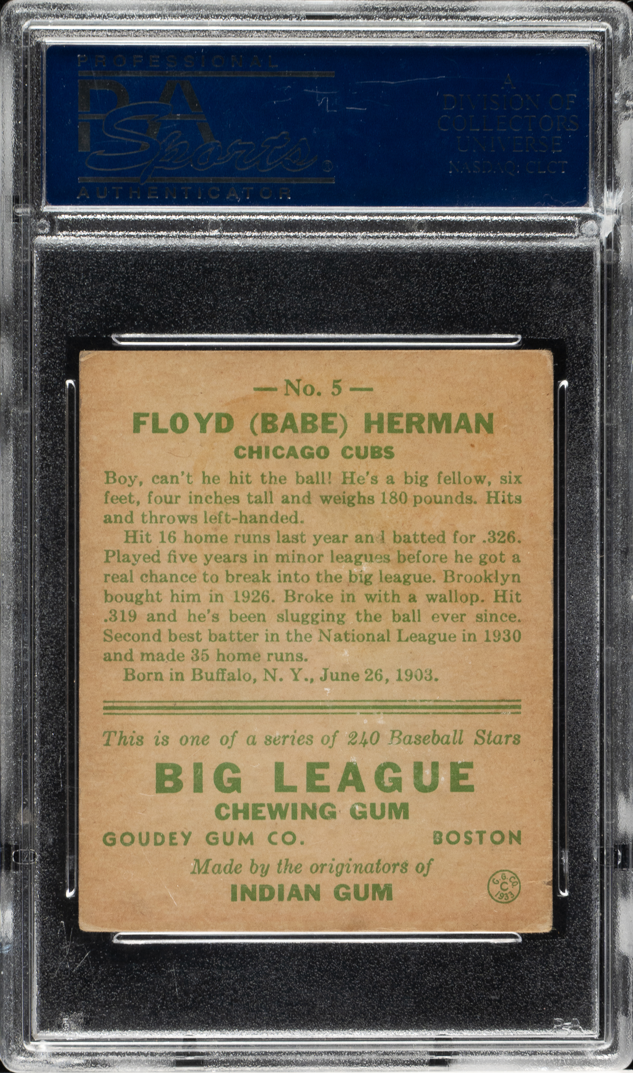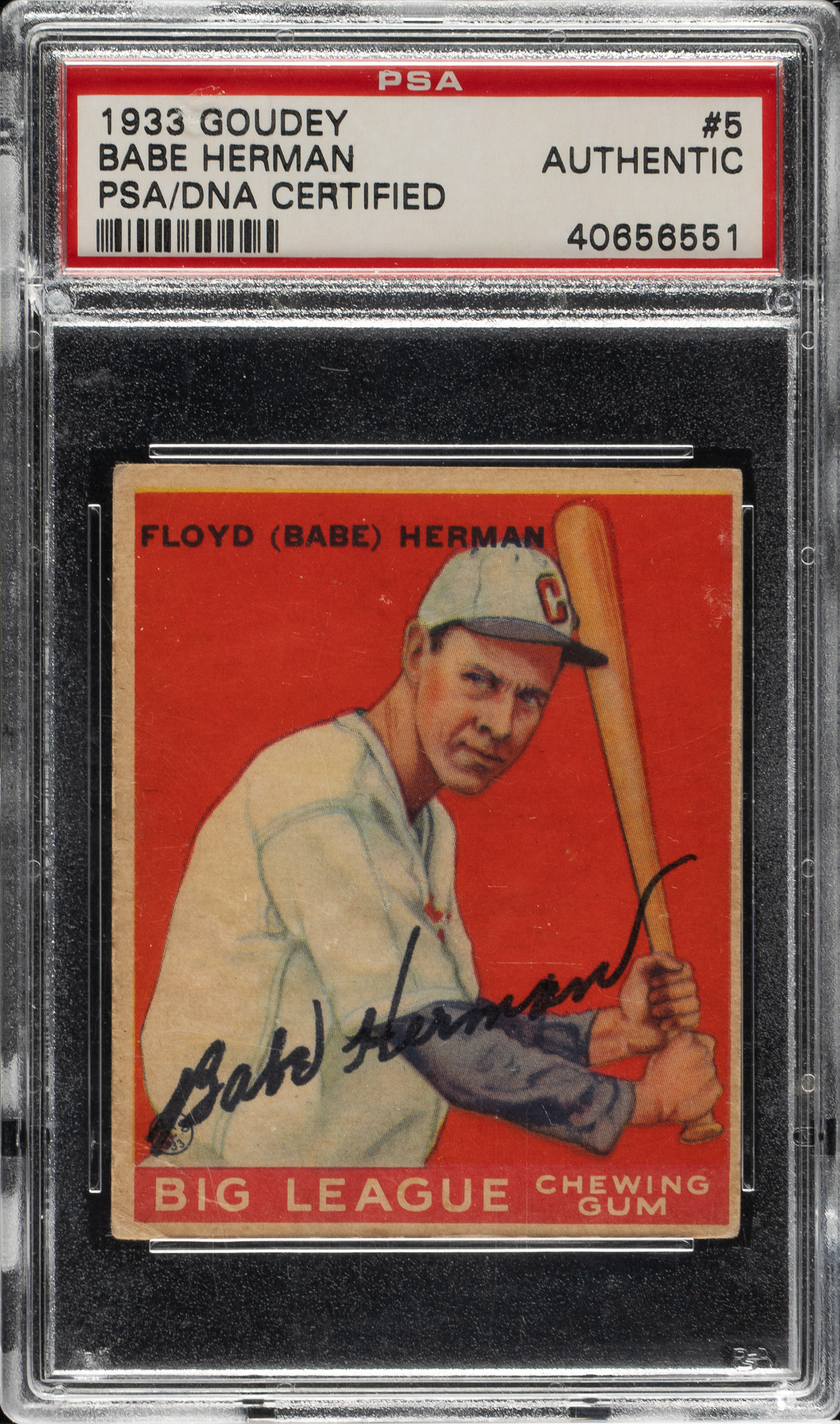 Lot # 1121: Signed 1933 R319 Goudey #5 Babe Herman - PSA/DNA