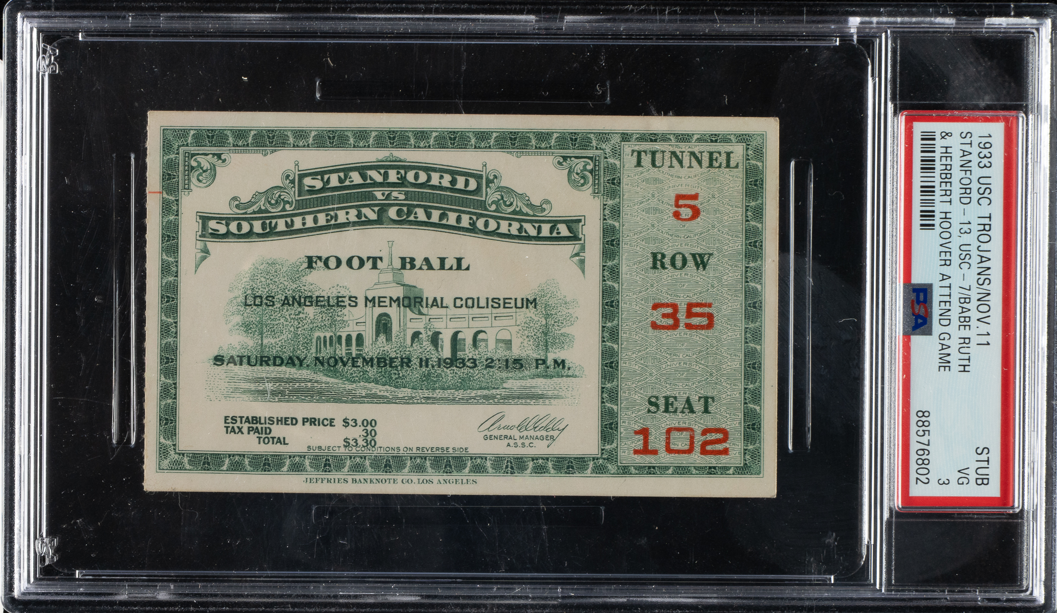 Graded VG 3 by PSA. USC Trojans vs. Stanford Cardinal.
