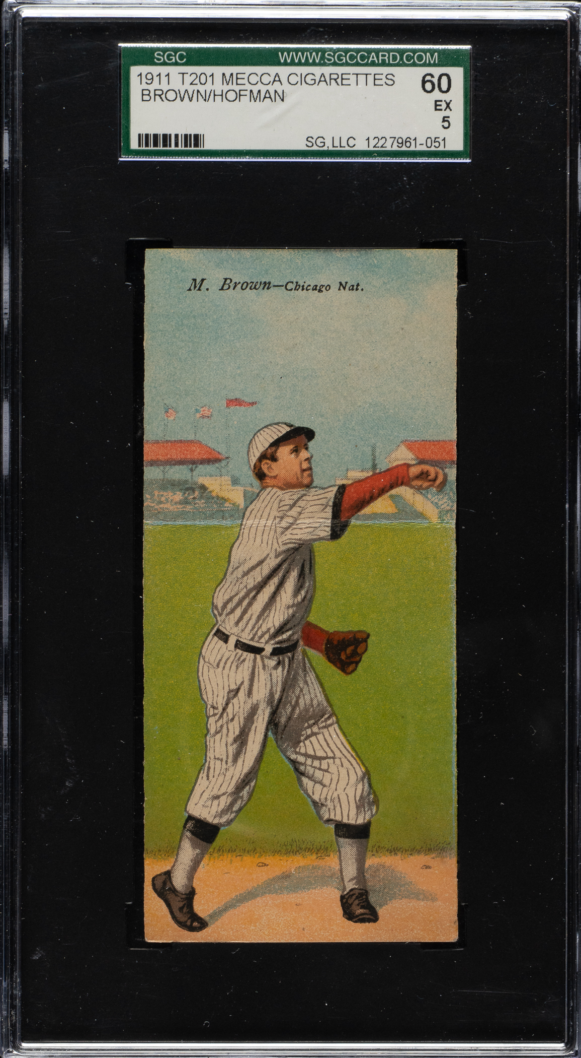 Graded EX 60 by SGC. Chicago Cubs Hall of Famer Mordecai Brown.