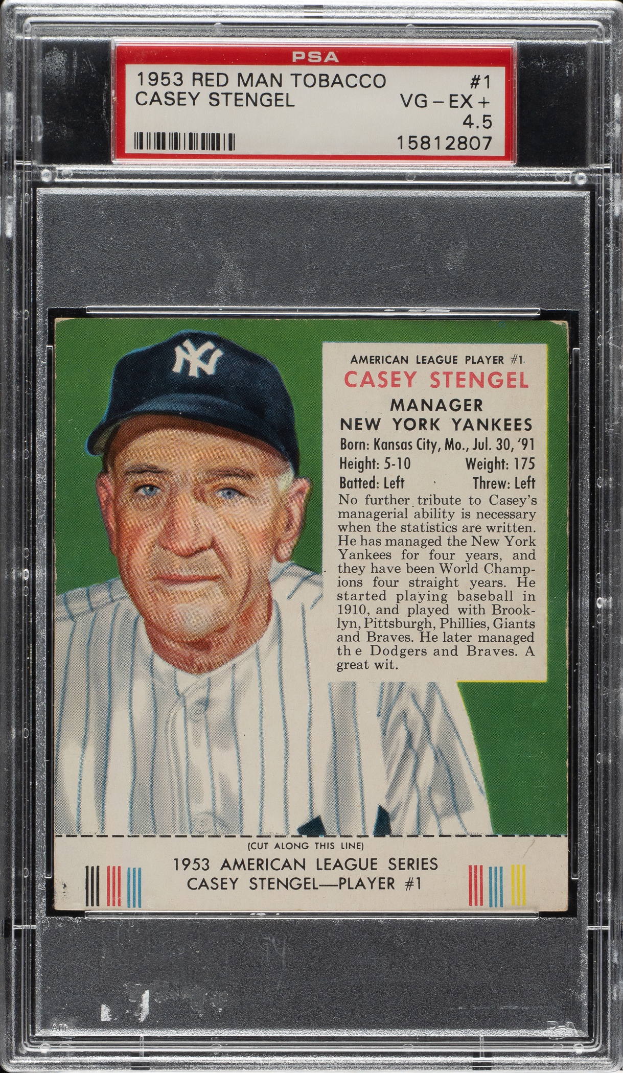 Graded VG-EX+ 4.5 by PSA. New York Yankees Hall of Famer Casey Stengel.