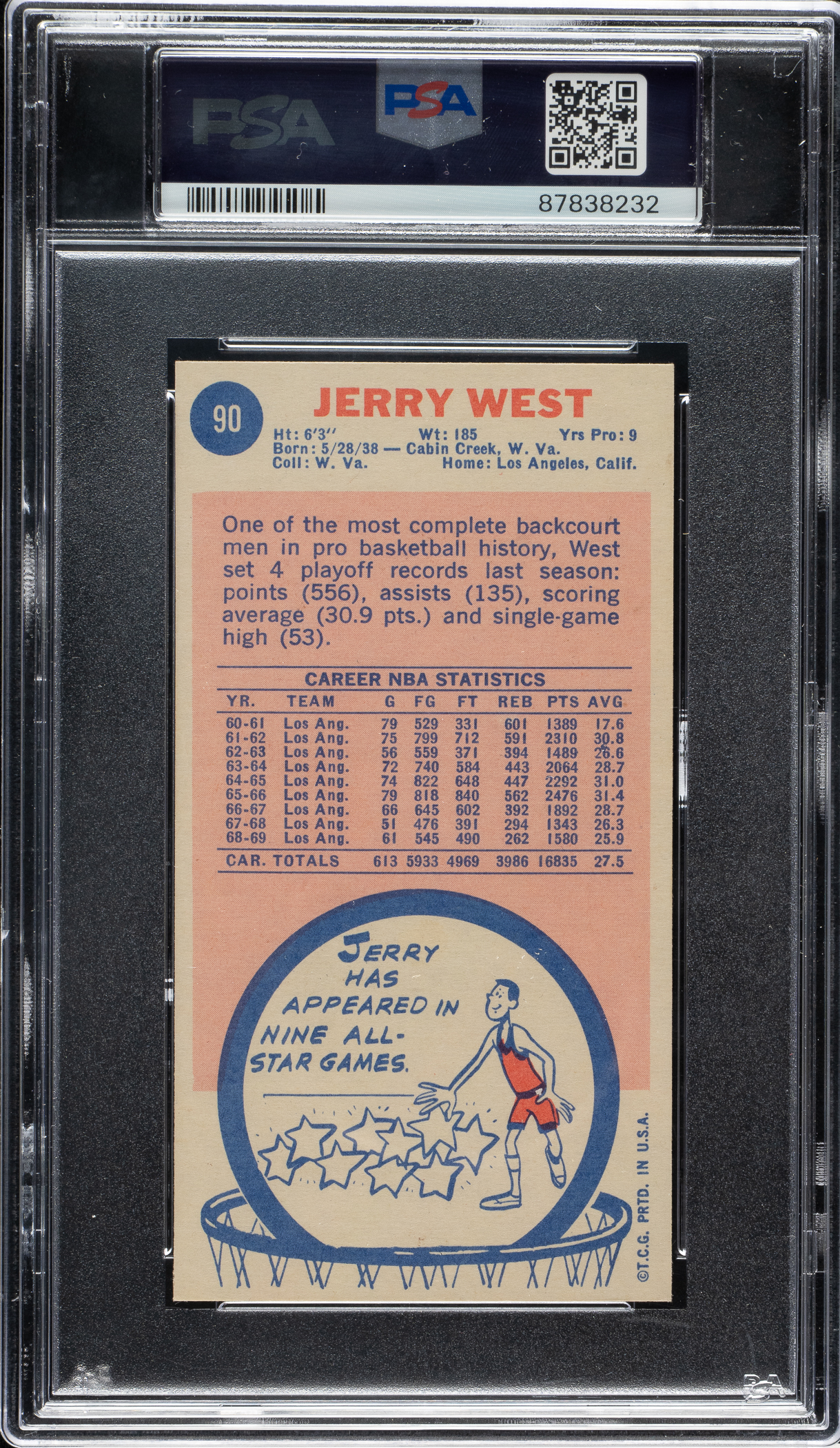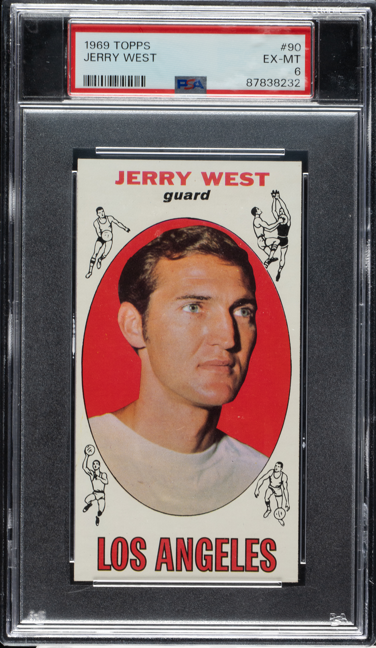 Graded EX-MT 6 by PSA. Los Angeles Lakers basketball Hall of Famer Jerry West.