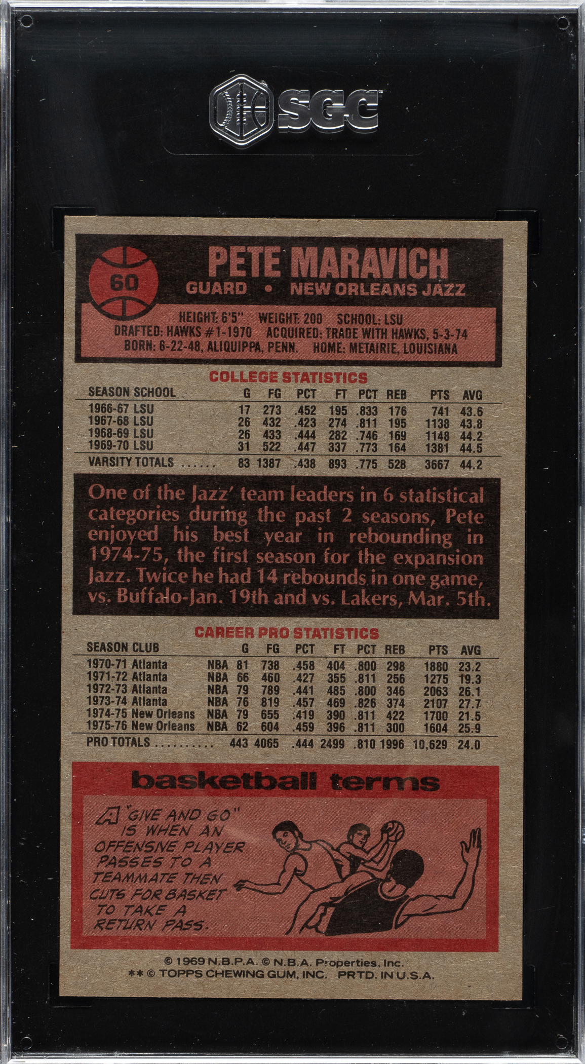 Graded NM 7 by SGC. Utah Jazz basketball Hall of Famer Pete Maravich.