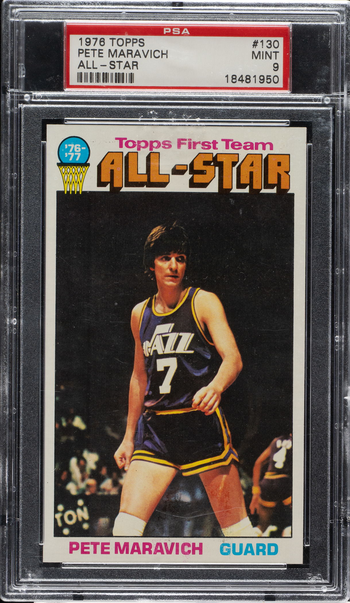 Graded MINT 9 by PSA. Utah Jazz basketball Hall of Famer Pete Maravich.