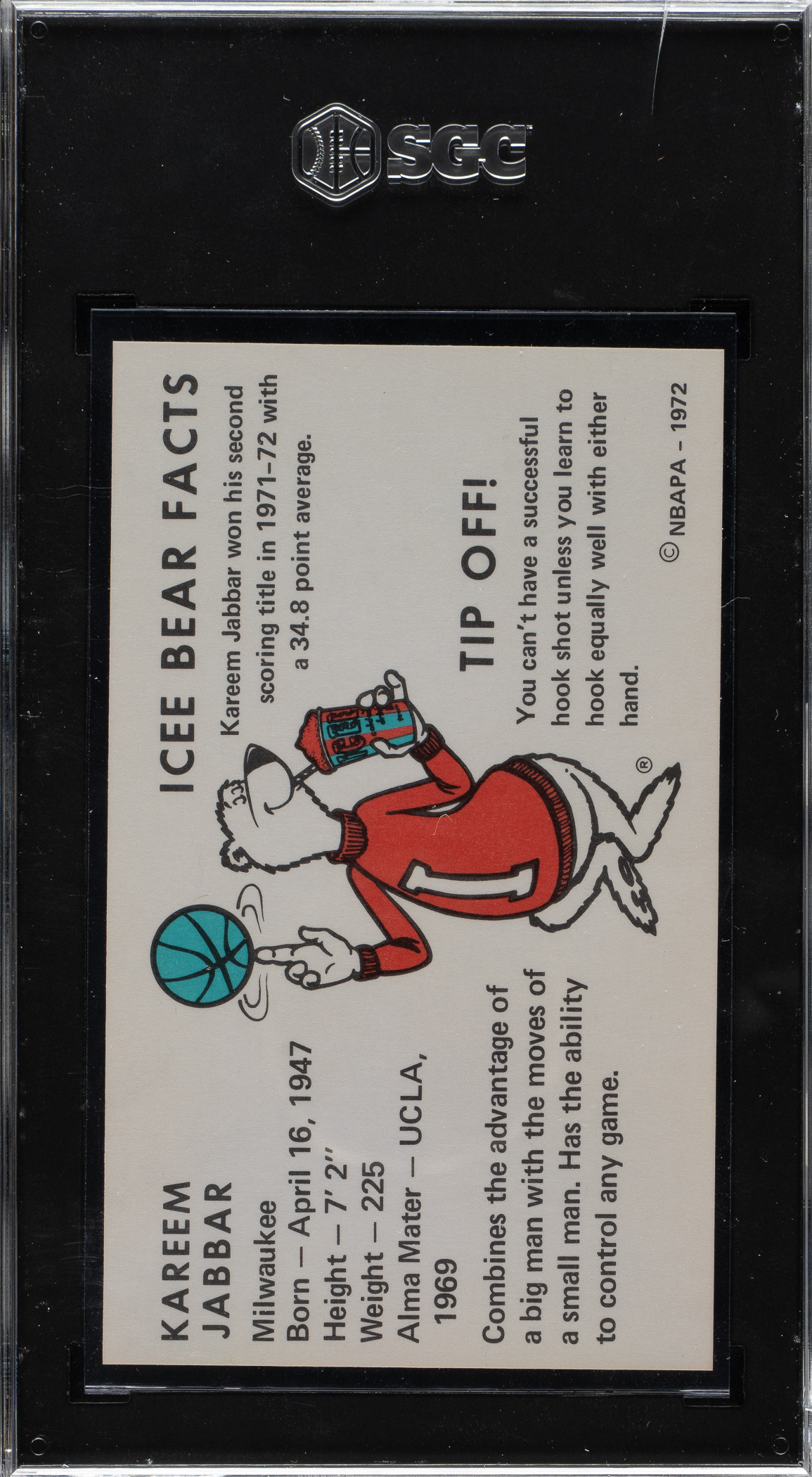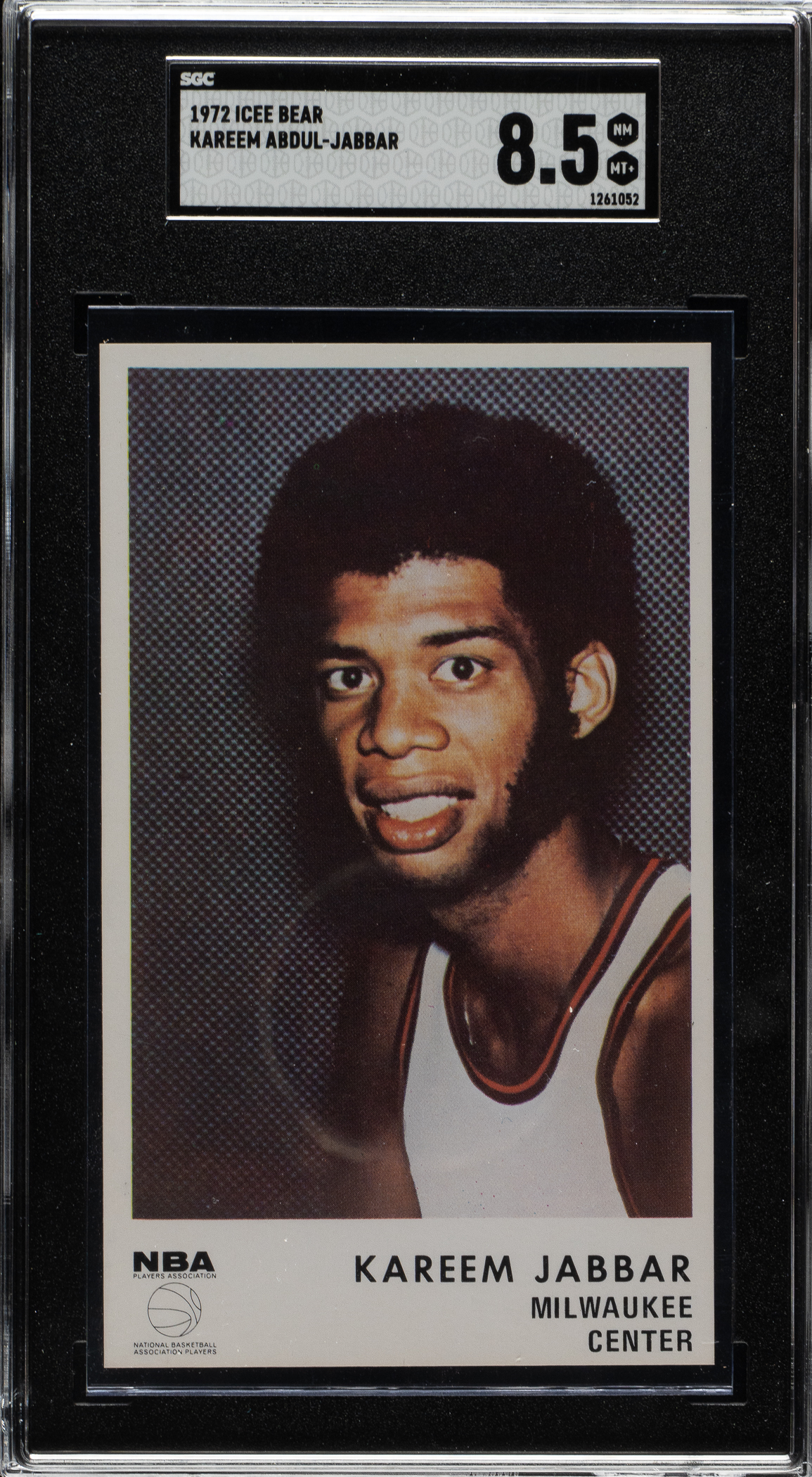 Graded NM-MT+ 8.5 by SGC. Milwaukee Bucks basketball Hall of Famer Kareem Abdul-Jabbar.