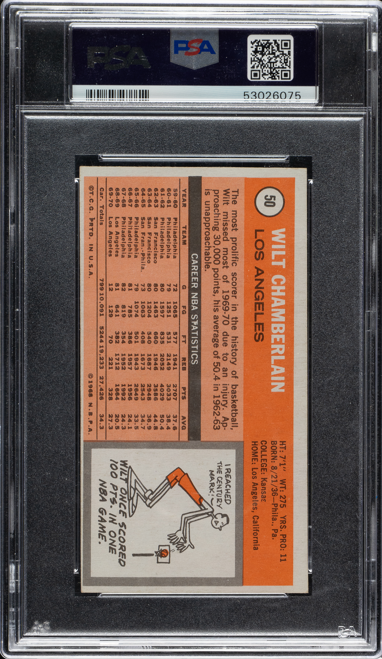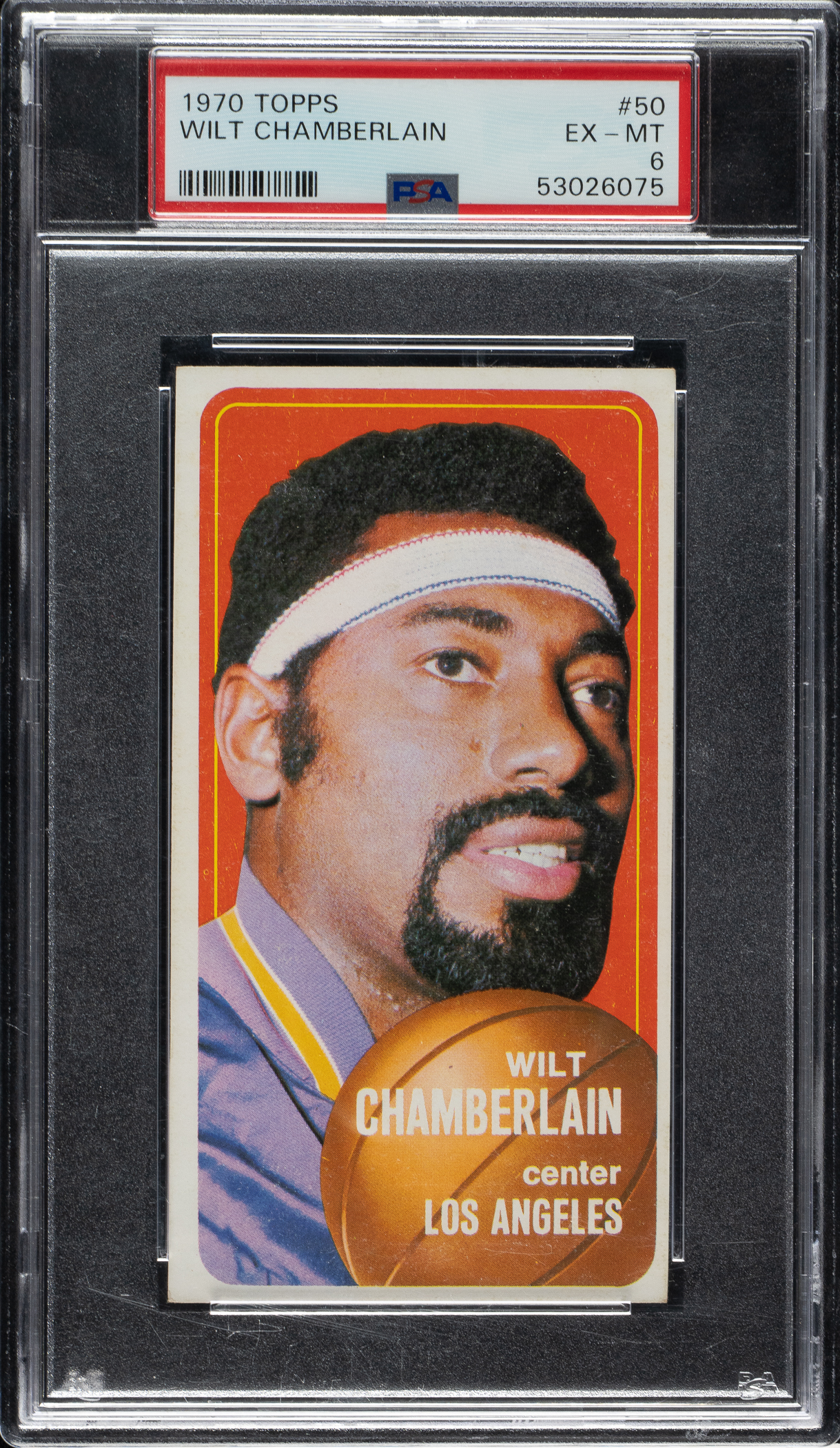 Graded EX-MT 6 by PSA. Los Angeles Lakers basketball Hall of Famer Wilt Chamberlain.