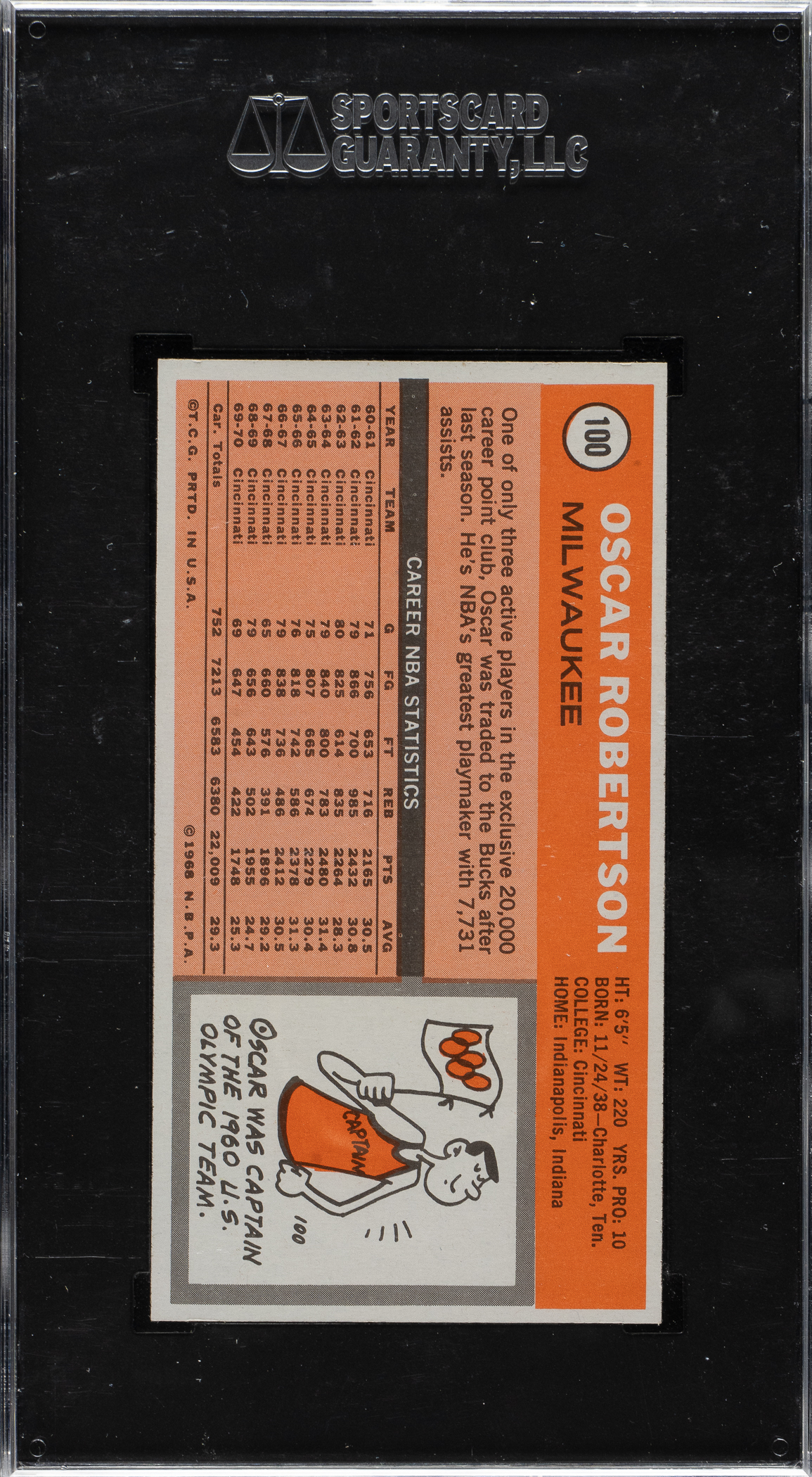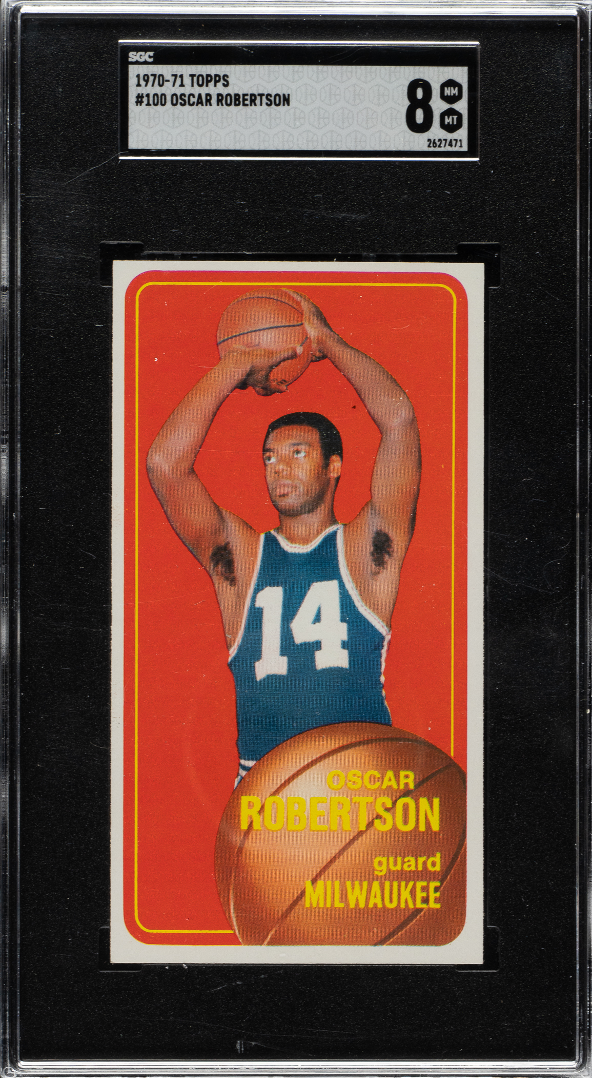 Graded NM/MT 8 by SGC. Milwaukee Bucks basketball Hall of Famer Oscar Robertson.