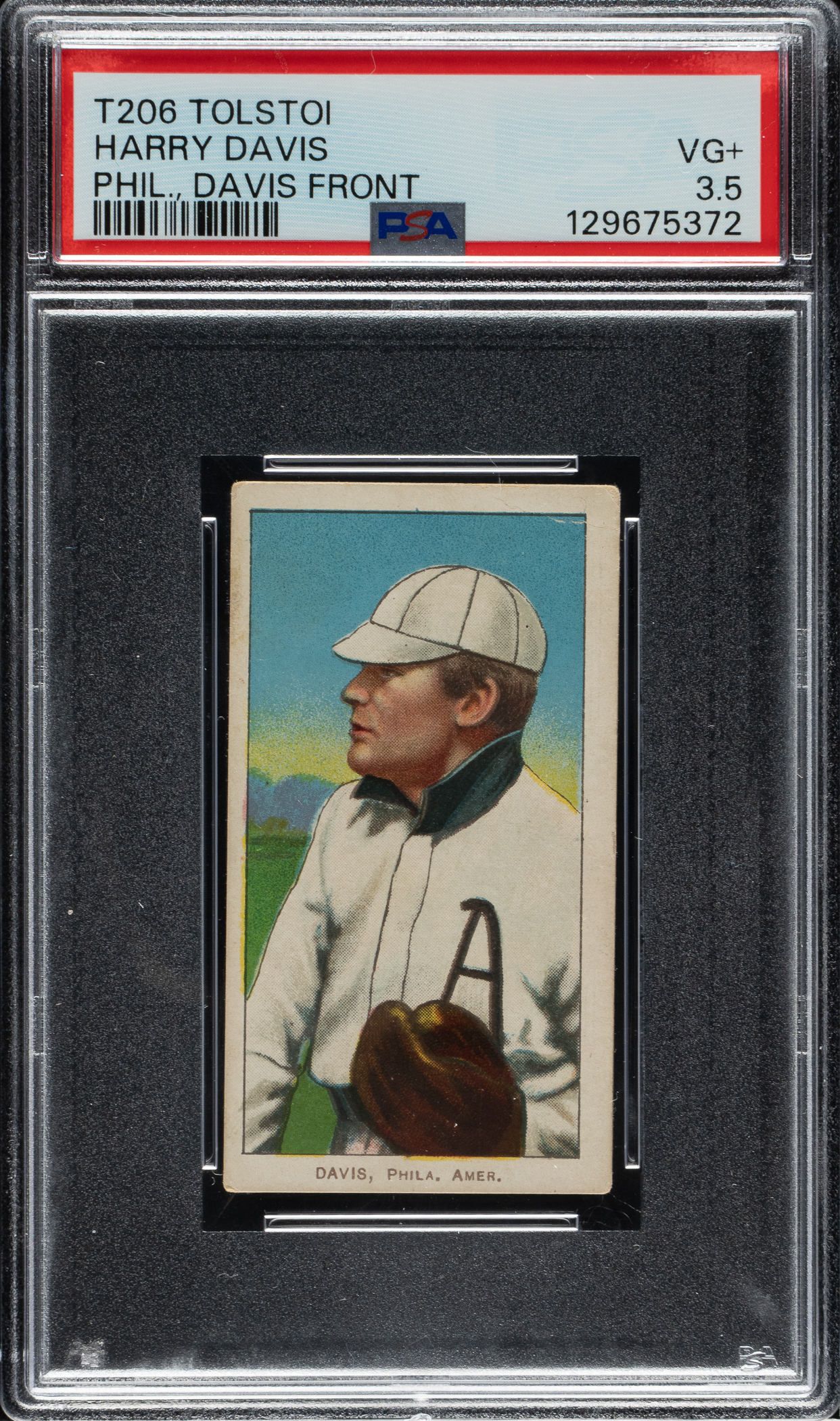 Lot # 253: 1909-1911 T206 White Border Harry Davis (Davis on Front) PSA VG+ 3.5 - Tolstoi Back