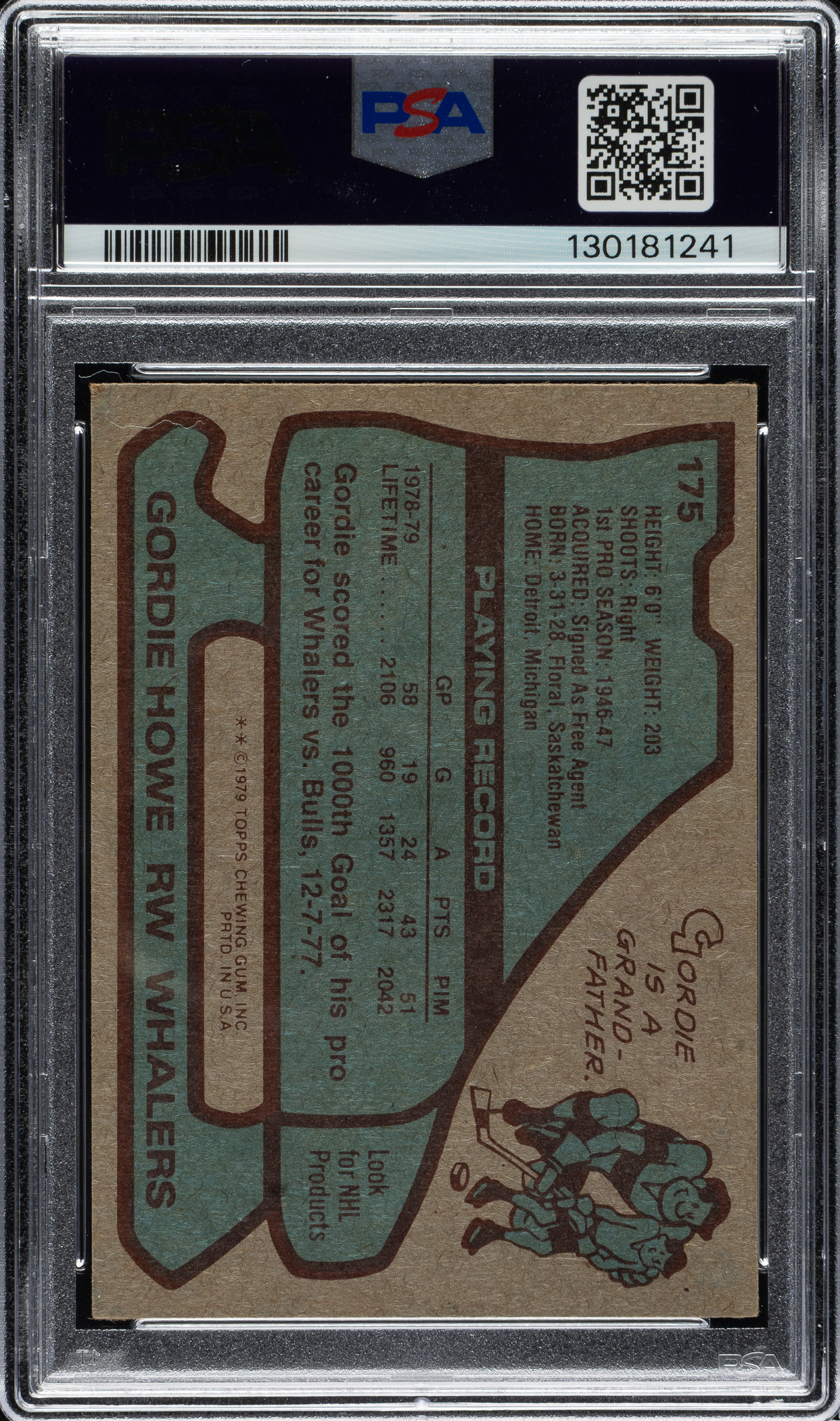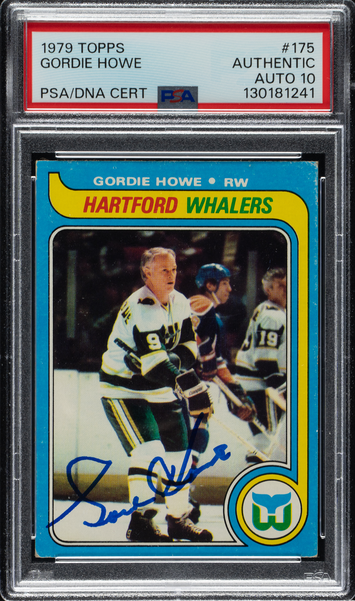 PSA/DNA has encapsulated the card, grading the signature GEM MINT 10. Hartford Whalers hockey Hall of Famer Gordie Howe.