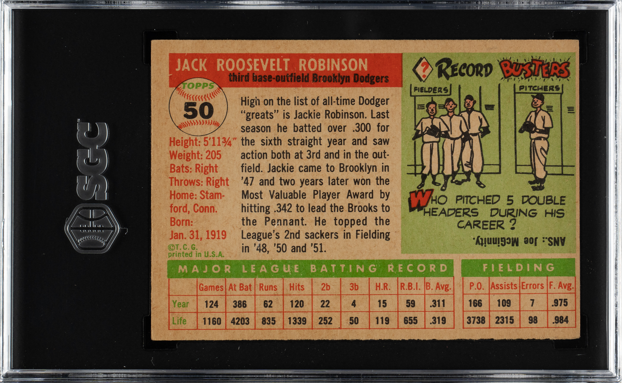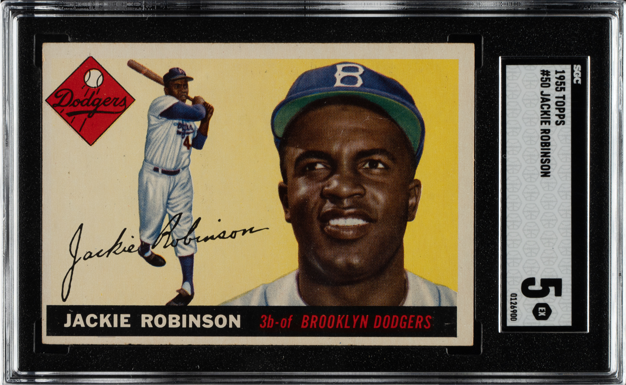 Graded EX 5 by SGC. Brooklyn Dodgers Hall of Famer Jackie Robinson.