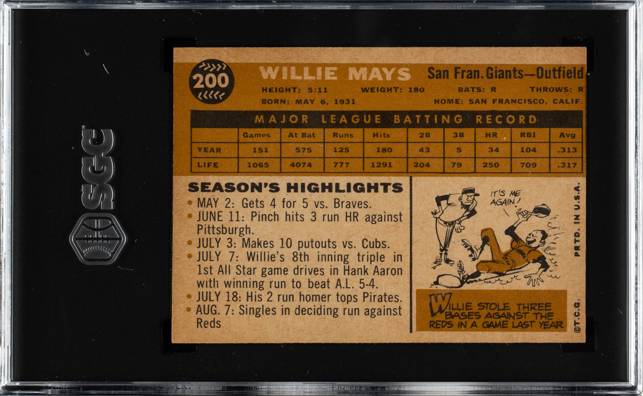 Graded EX+ 5.5 by SGC. San Francisco Giants Hall of Famer Willie Mays.