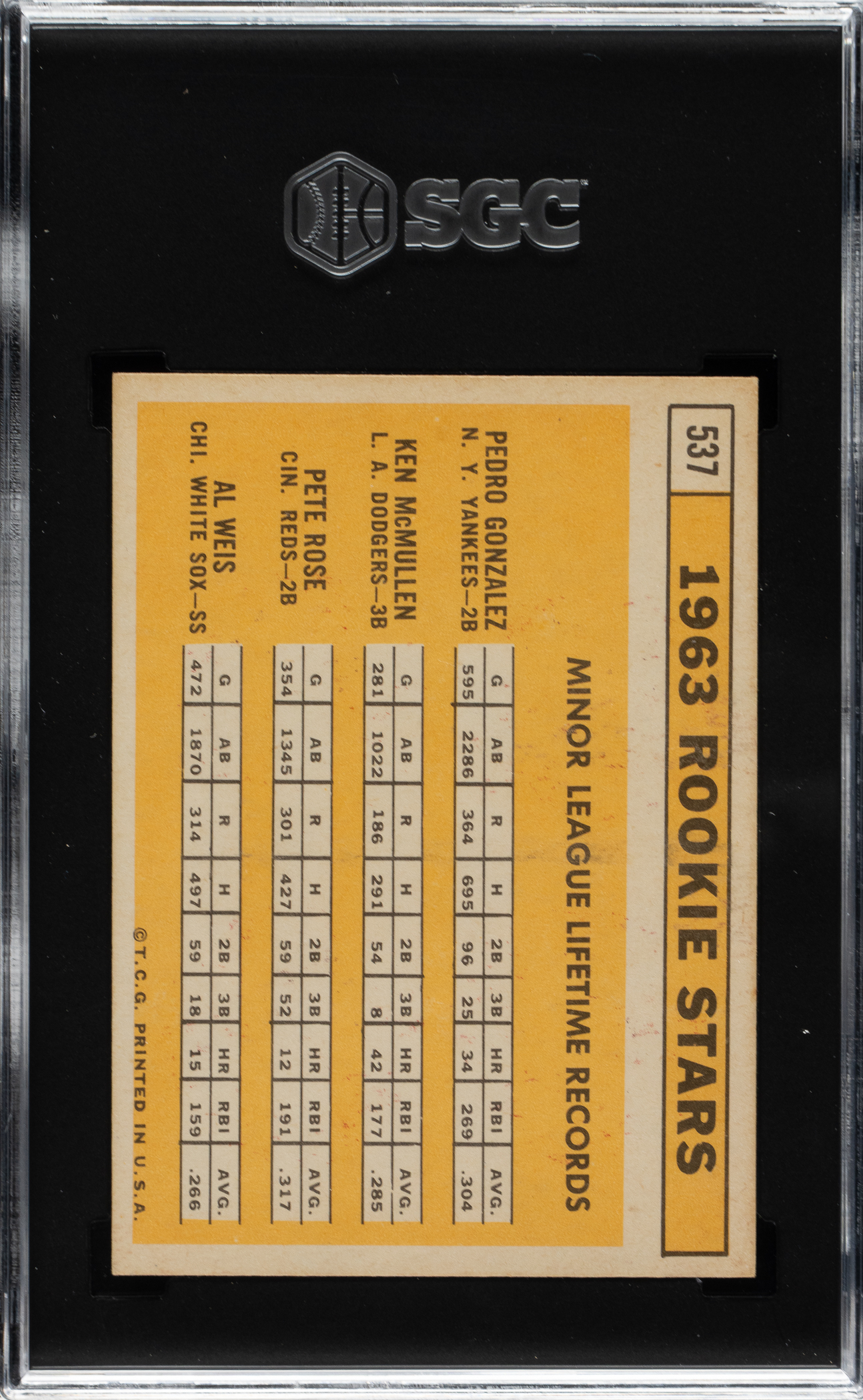 Lot # 1947: 1963 Topps #537 Pete Rose Rookie SGC VG/EX+ 4.5