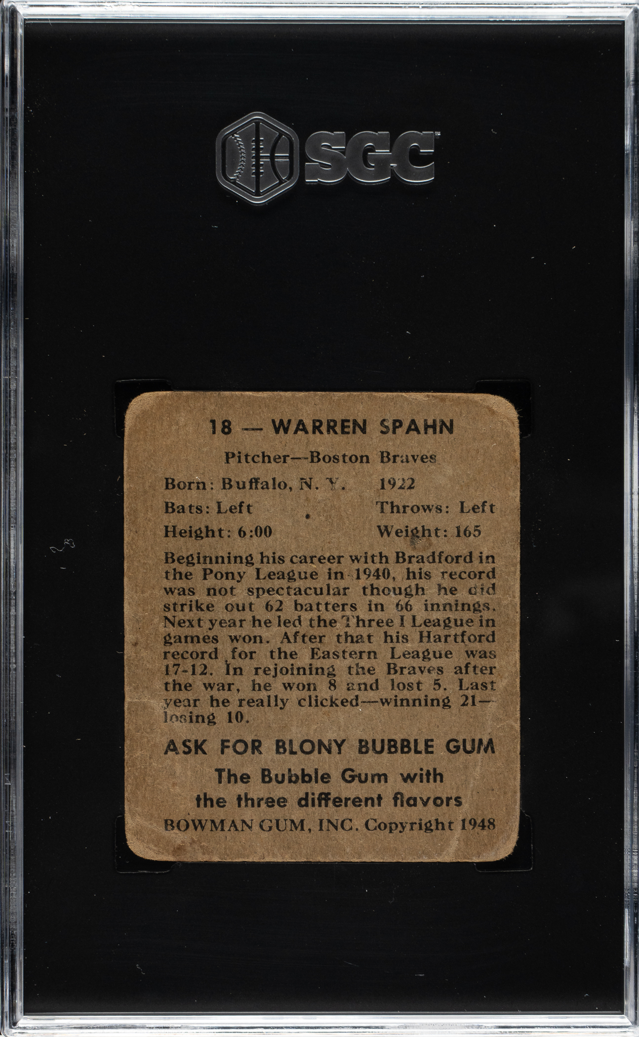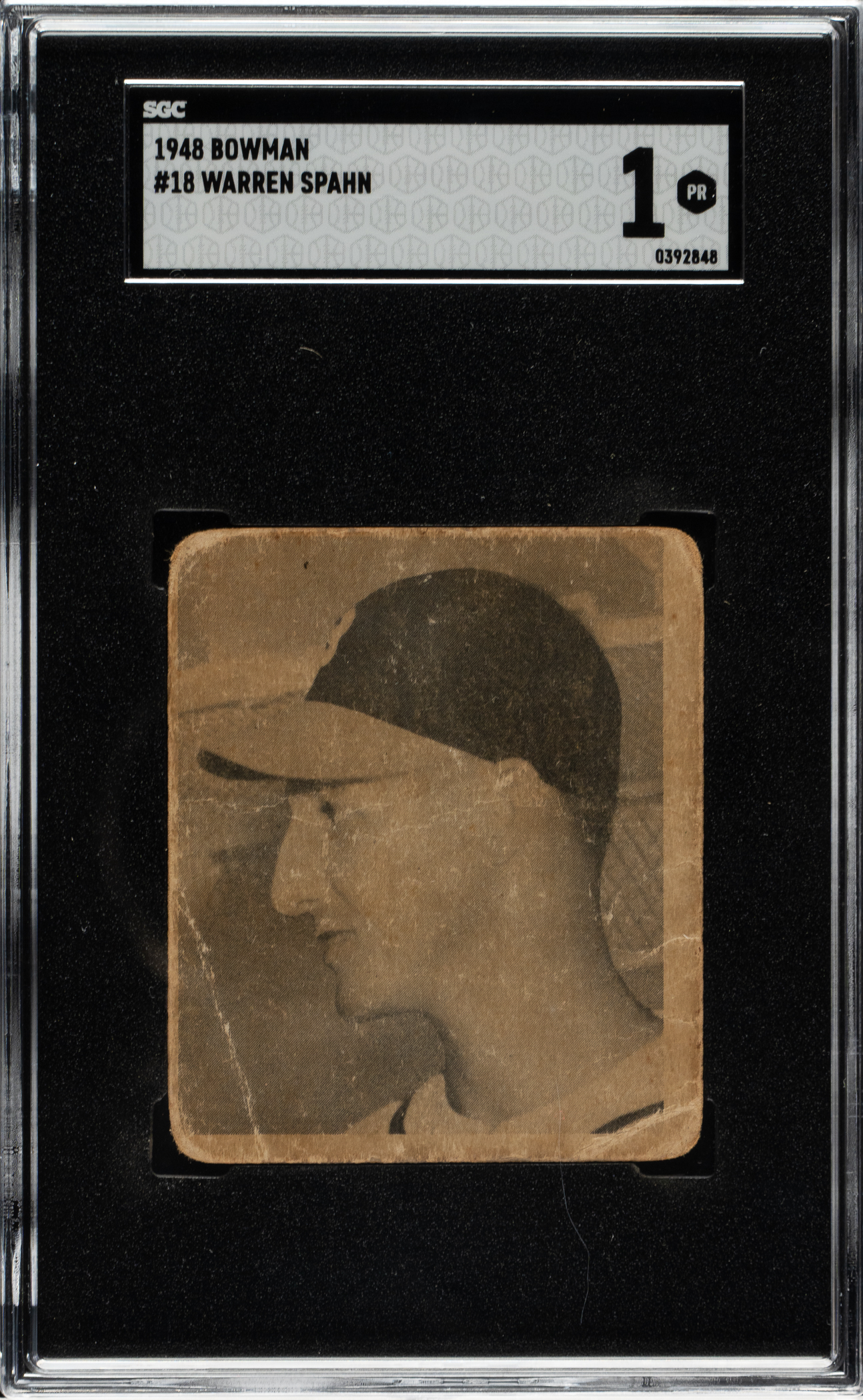 Graded POOR 1 by SGC. Boston Braves Hall of Famer Warren Spahn.