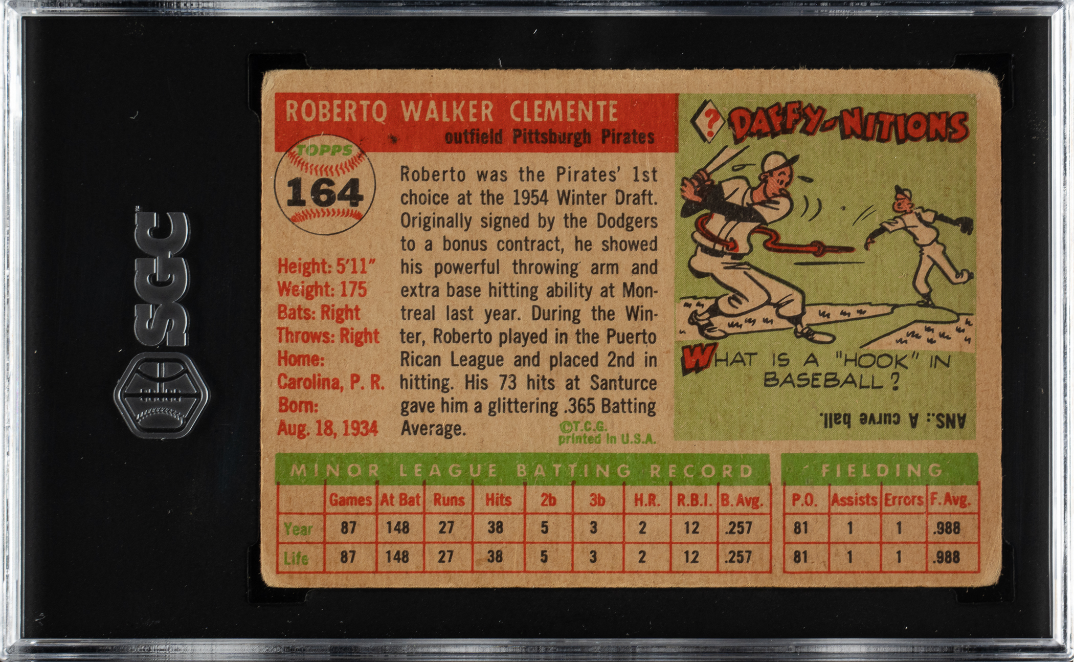 Graded GOOD 2 by SGC. Pittsburgh Pirates Hall of Famer Roberto Clemente.