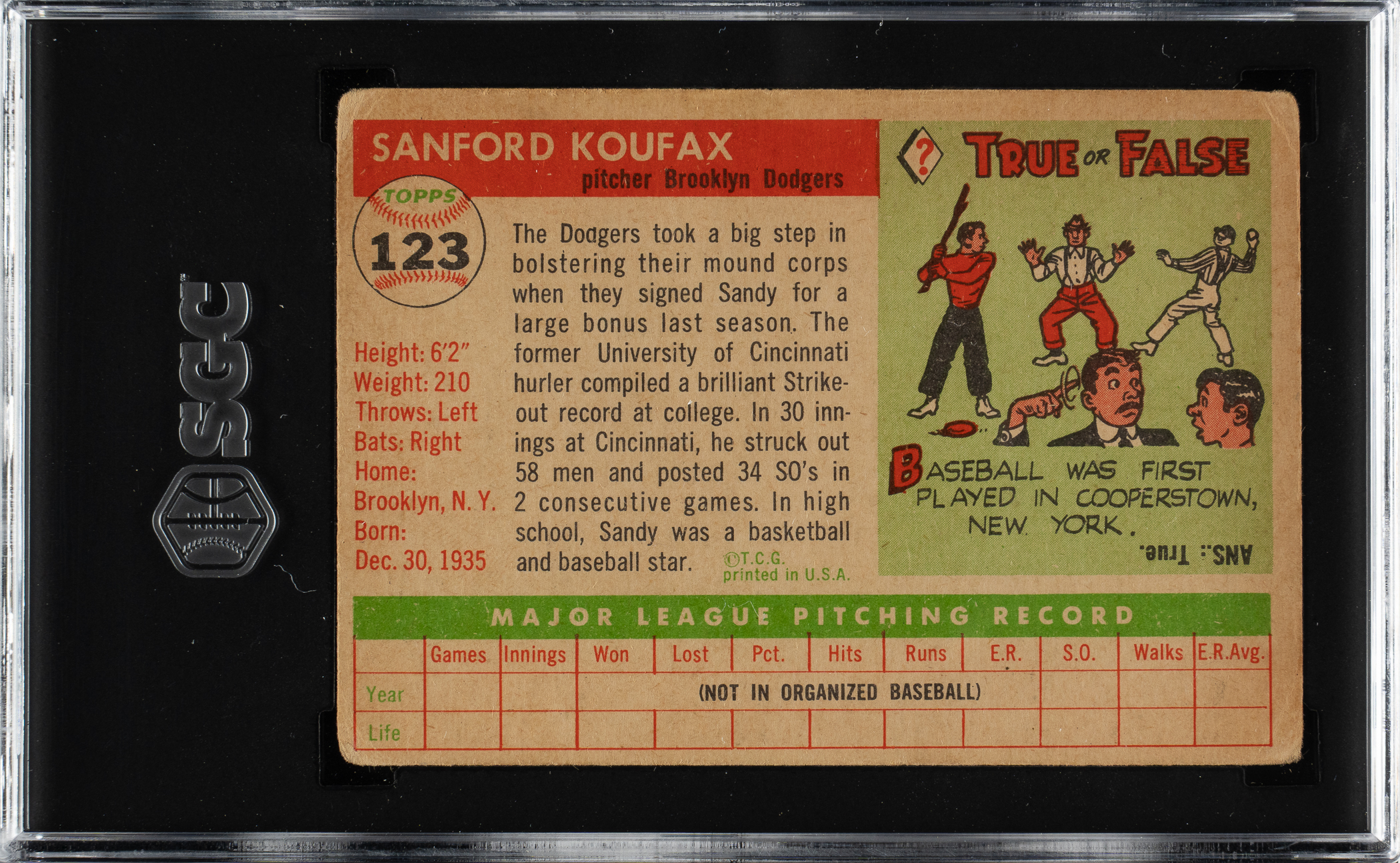 Graded GOOD+ 2.5 by SGC. Brooklyn Dodgers Hall of Famer Sandy Koufax.