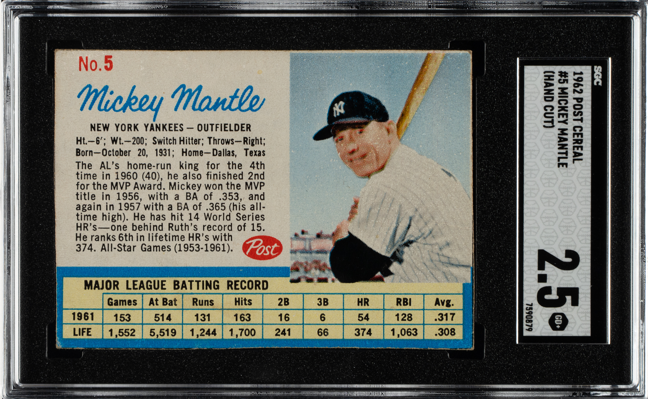 Graded GOOD+ 2.5 by SGC. New York Yankees Hall of Famer Mickey Mantle.
