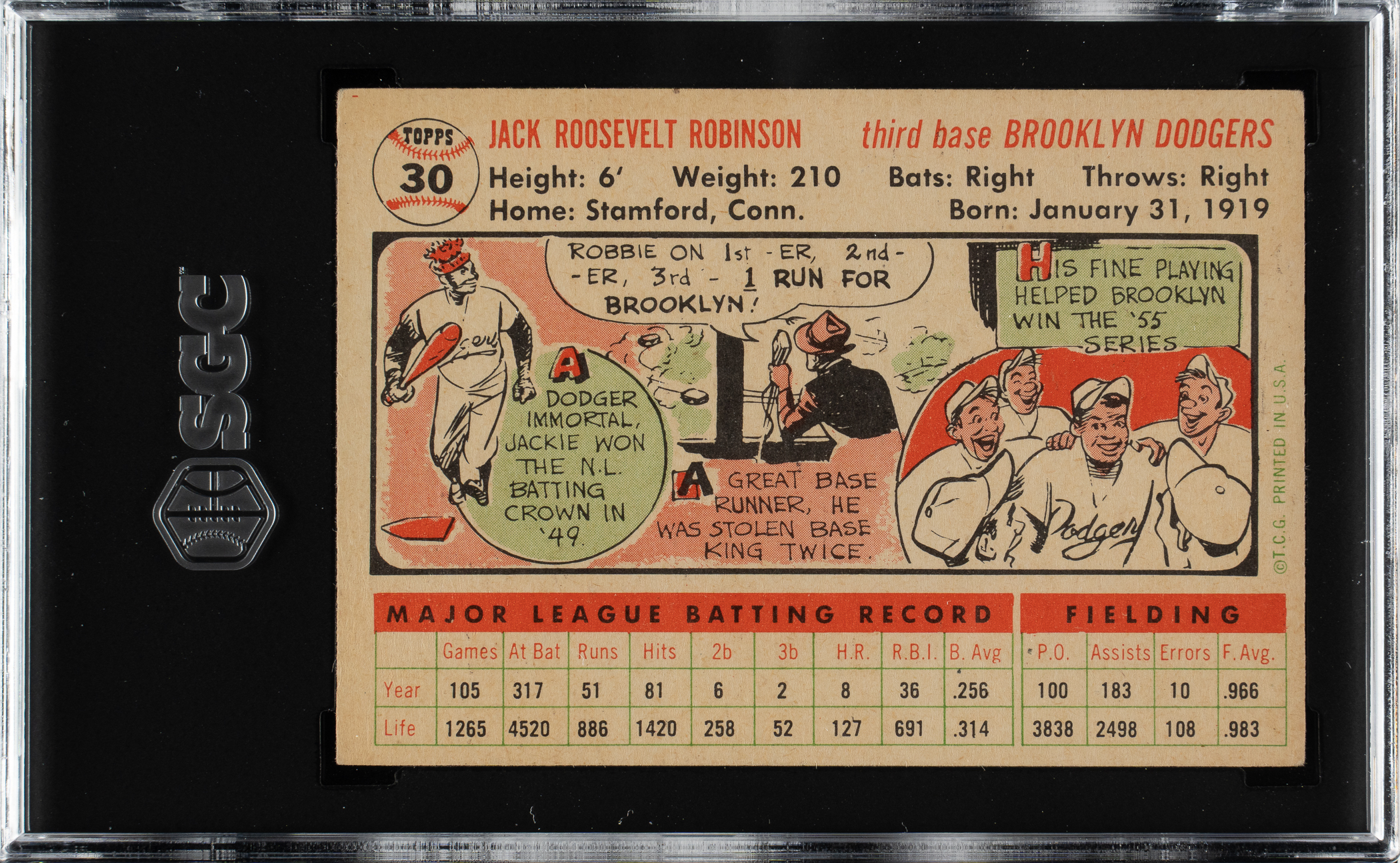 Graded VG/EX 4 by SGC. Brooklyn Dodgers Hall of Famer Jackie Robinson.