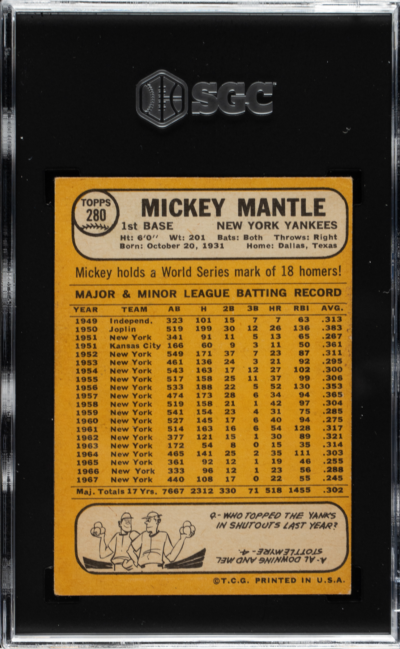 Graded VG 3 by SGC. New York Yankees Hall of Famer Mickey Mantle.