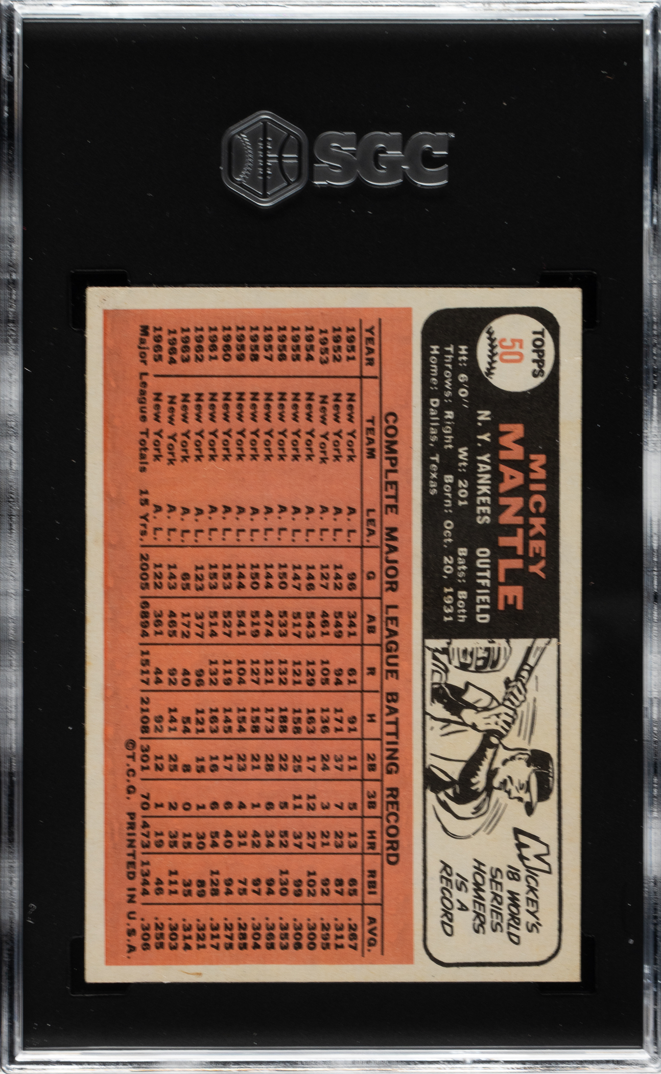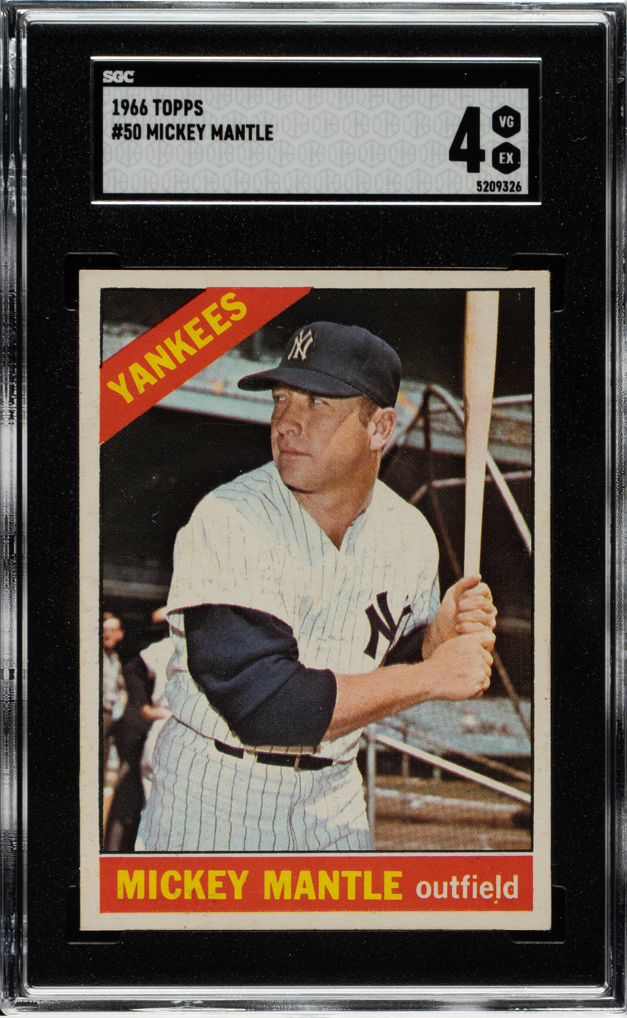 Lot # 2039: 1966 Topps #50 Mickey Mantle SGC VG/EX 4
