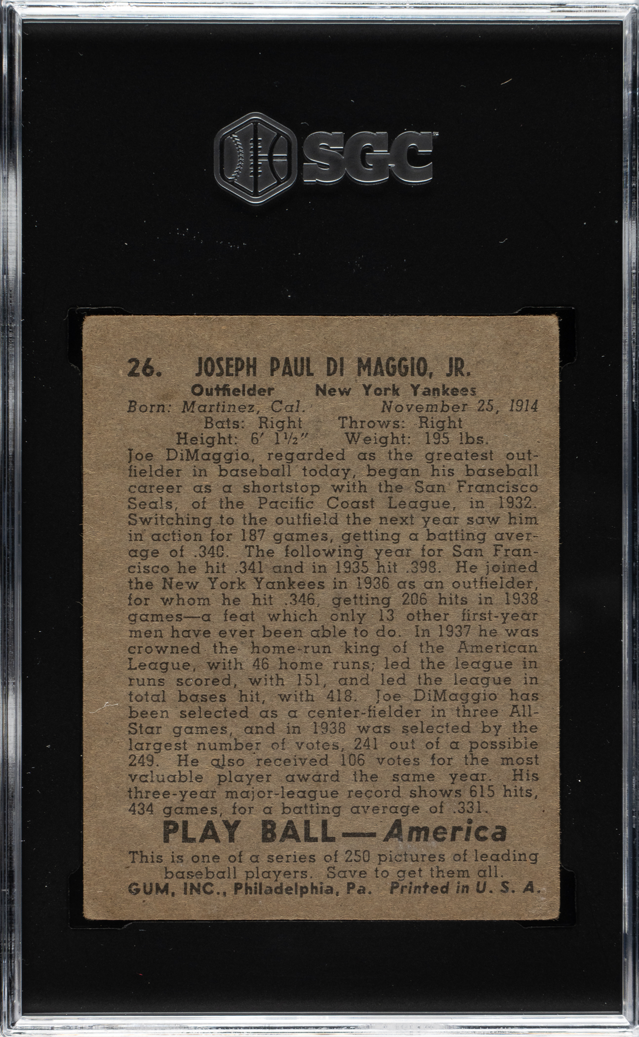 Graded VG 3 by SGC. New York Yankees Hall of Famer Joe DiMaggio.