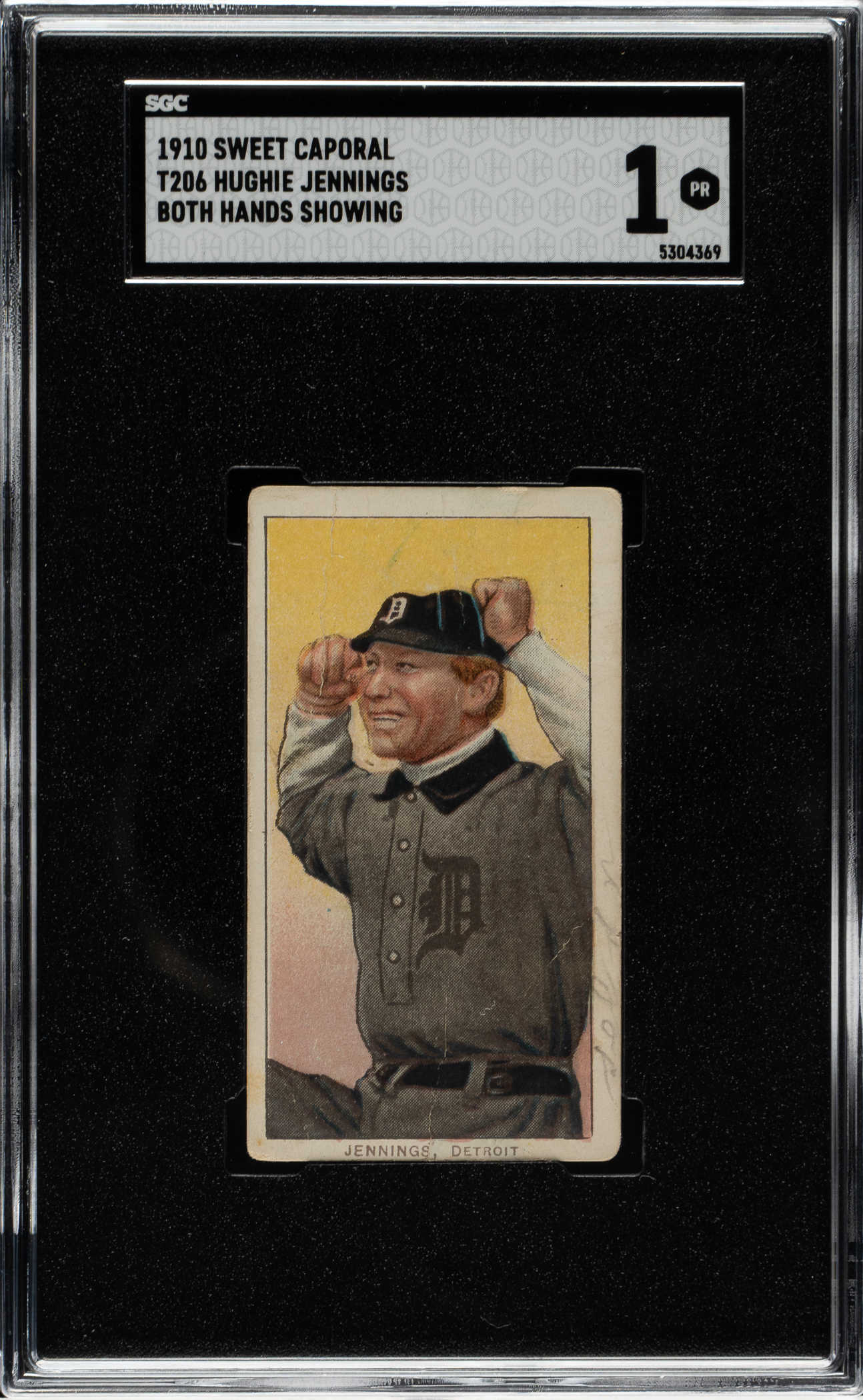 Lot # 401: 1909-1911 T206 White Border Hughie Jennings Both Hands Showing SGC POOR 1