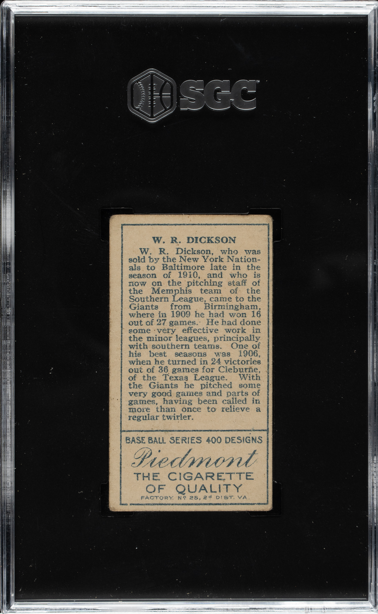 Lot # 780: 1911 T205 Gold Border W.R. Dickson SGC EX 5