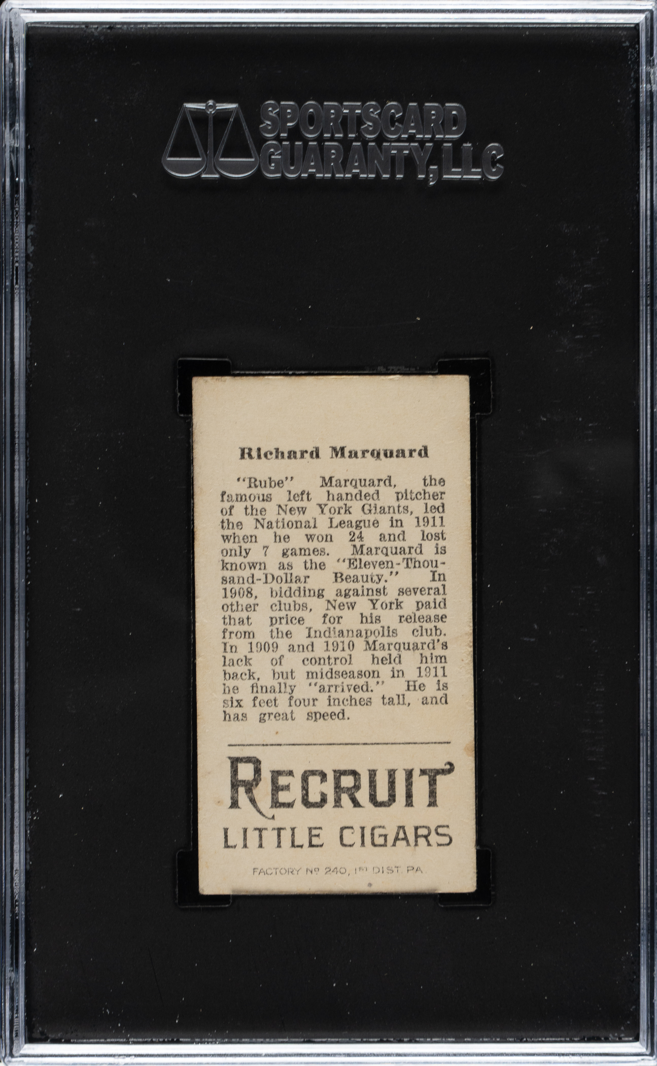 Graded VG/EX 4 by SGC. New York Giants Hall of Famer Rube Marquard.