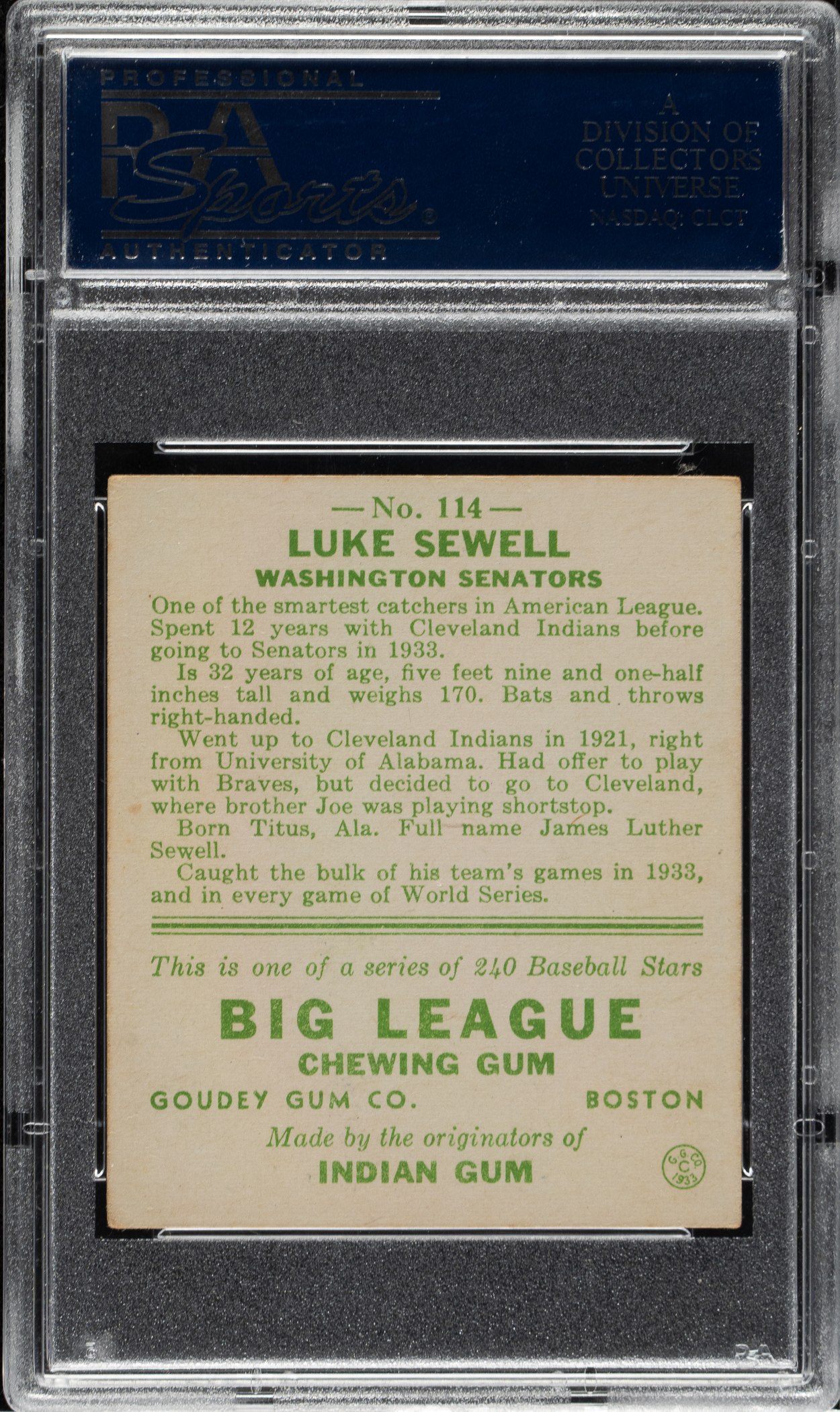Lot # 994: 1933 R319 Goudey #114 Luke Sewell PSA EX 5