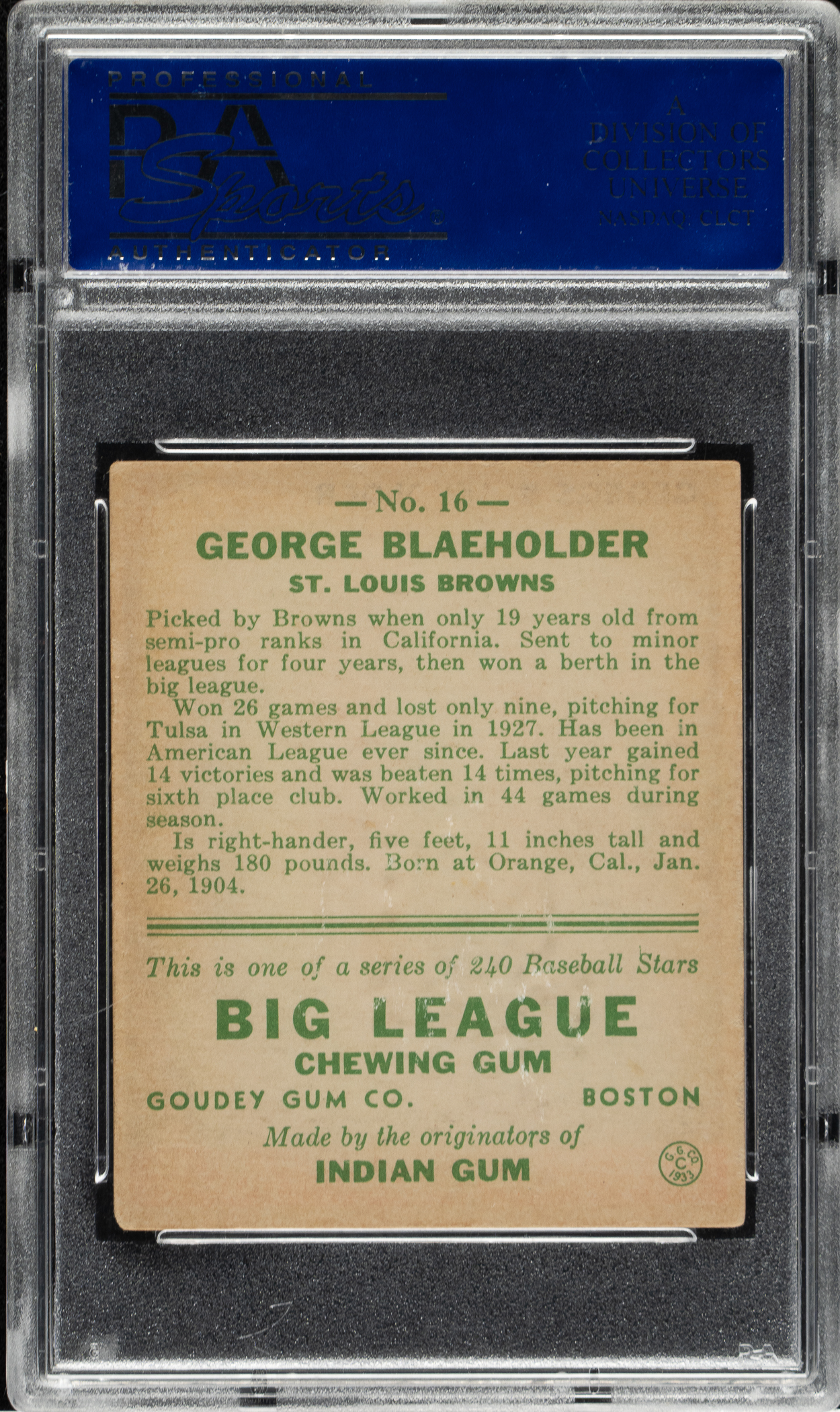 Lot # 1023: 1933 R319 Goudey #16 George Blaeholder PSA EX 5