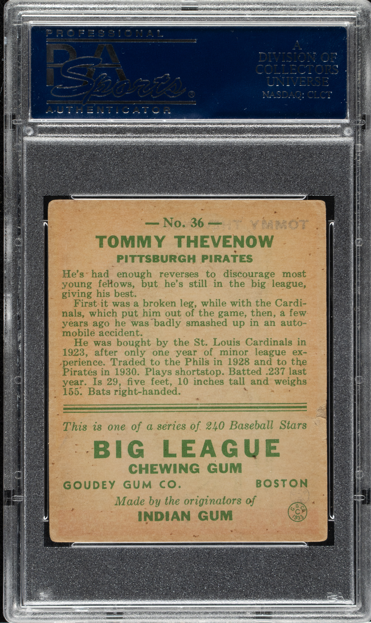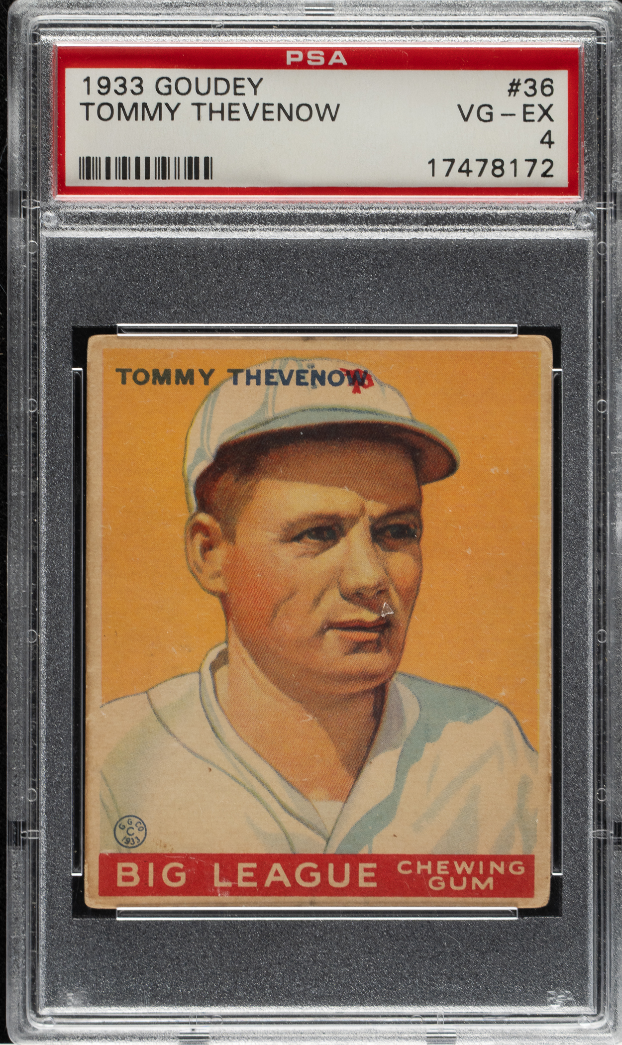 Lot # 1083: 1933 R319 Goudey #36 Tommy Thevenow PSA VG-EX 4