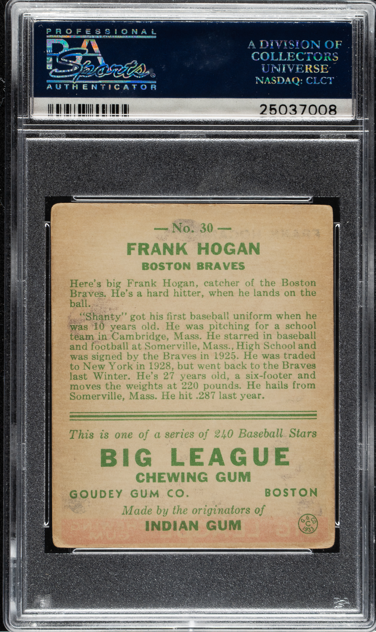 Lot # 1080: 1933 R319 Goudey #30 Frank Hogan PSA VG-EX 4