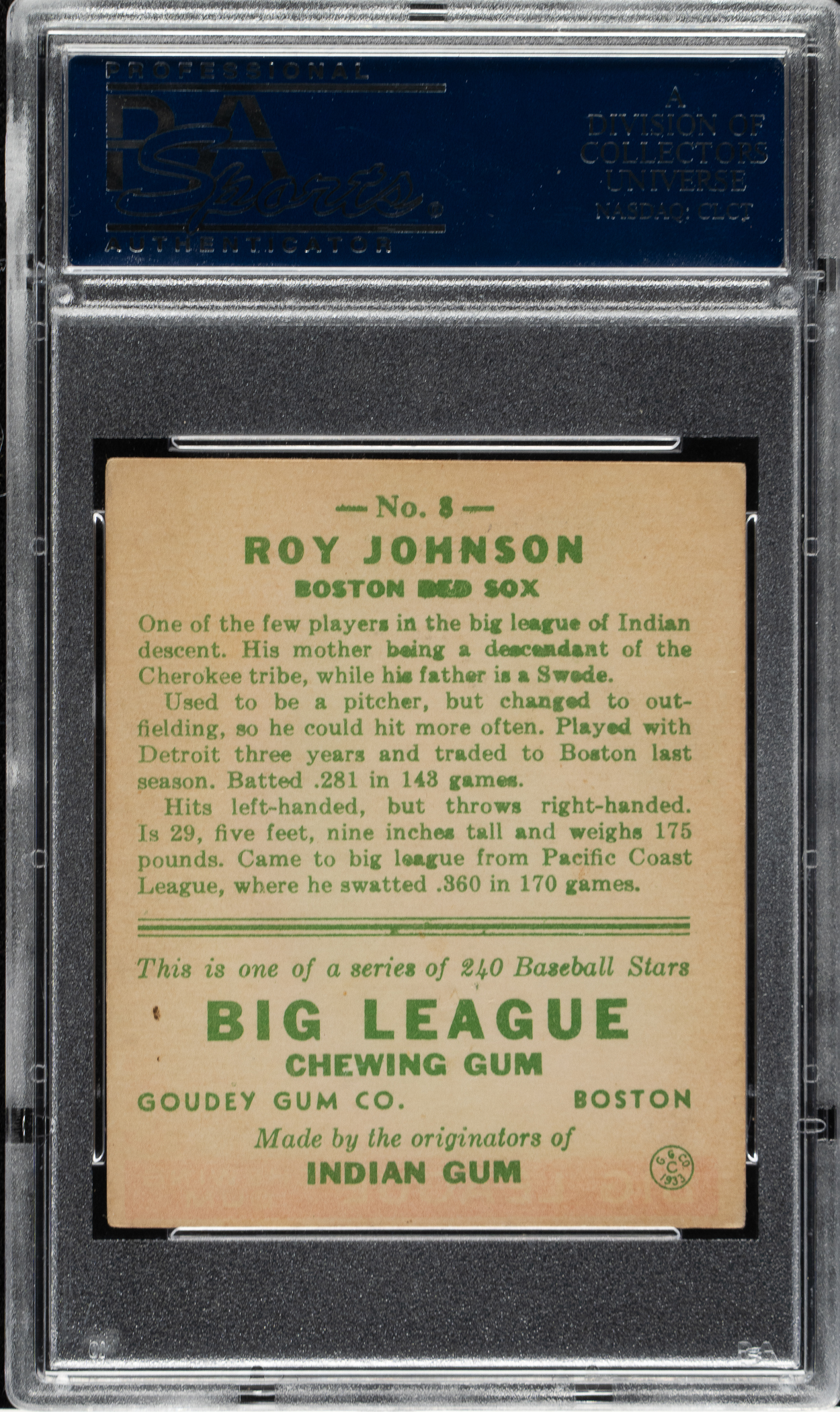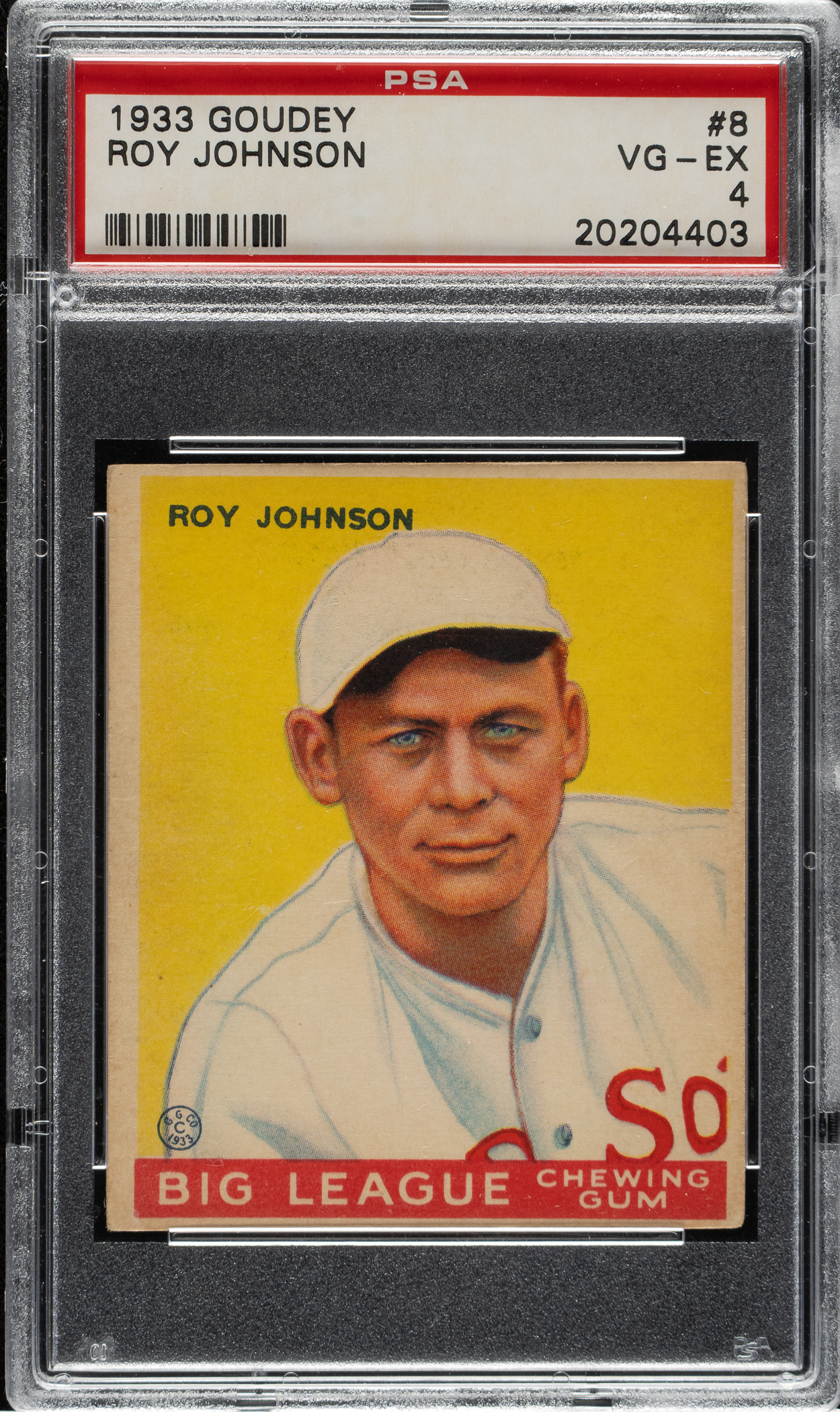 Lot # 1102: 1933 R319 Goudey #8 Roy Johnson PSA VG-EX 4