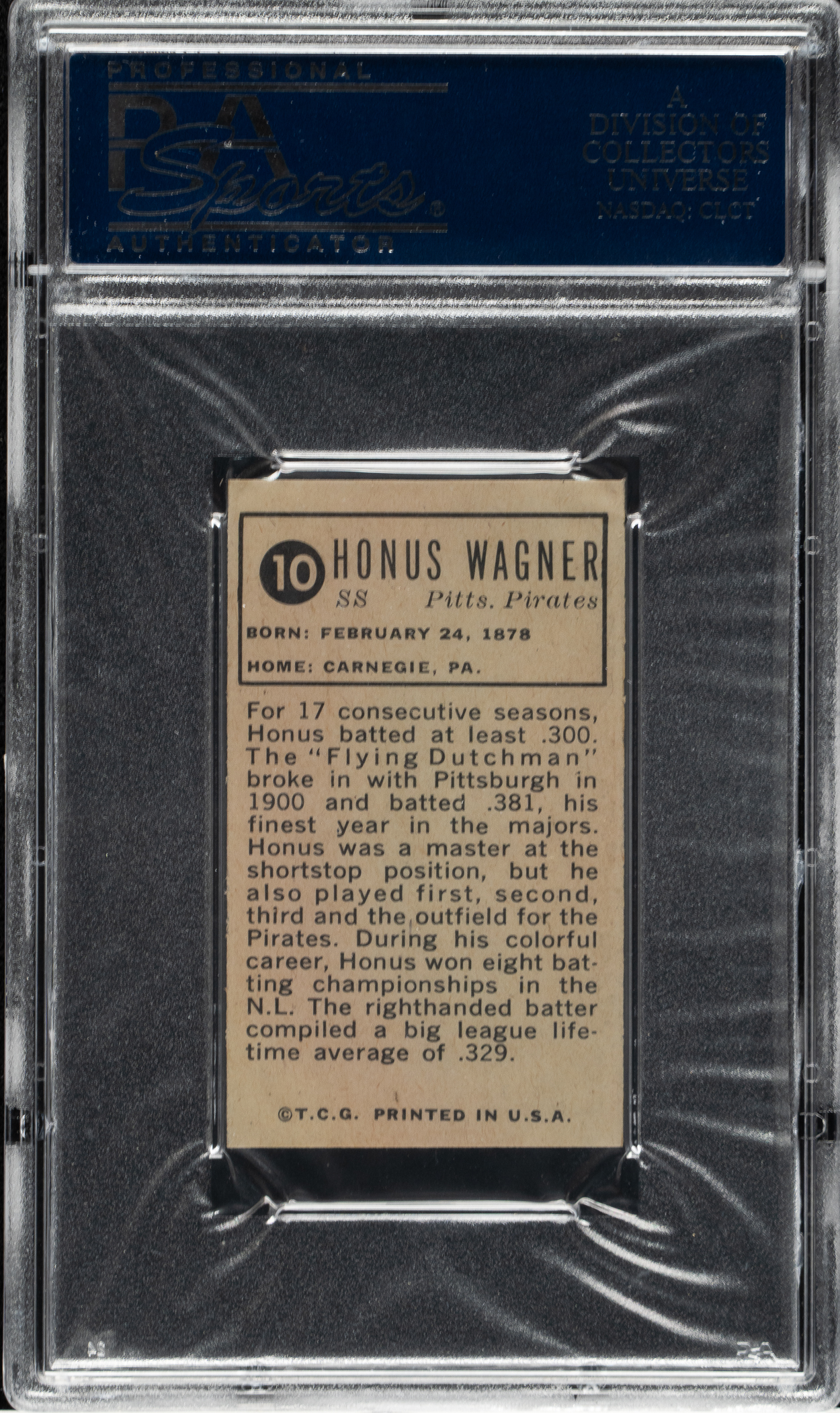 Graded NM-MT 8 by PSA. Pittsburgh Pirates Hall of Famer Honus Wagner.
