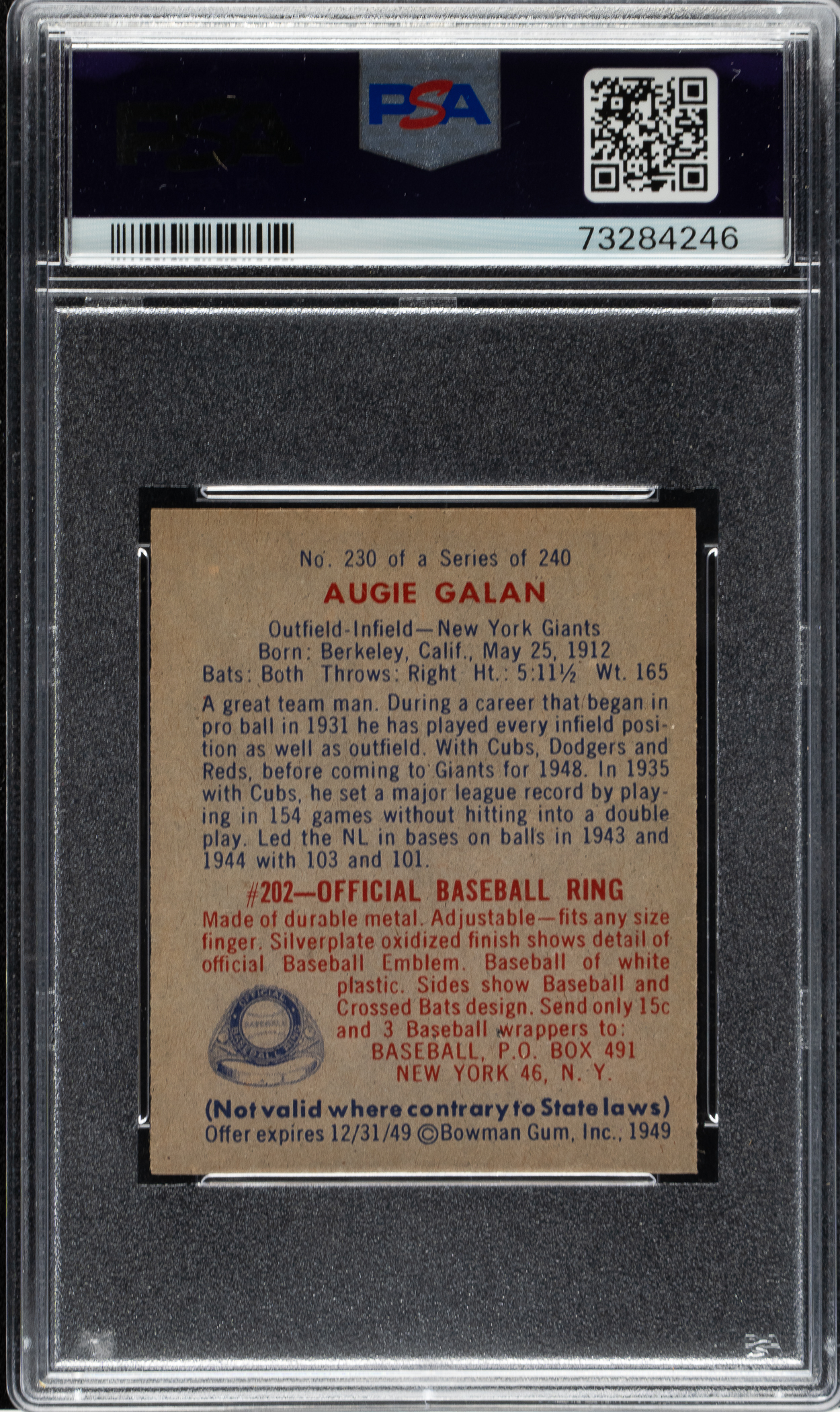 Lot # 1303: 1949 Bowman #230 Augie Galan PSA NM 7