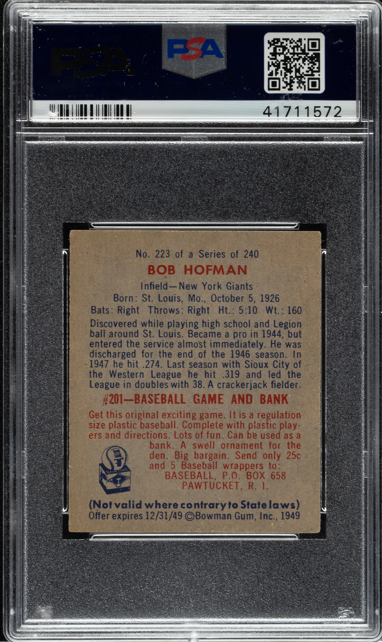 Lot # 1301: 1949 Bowman #223 Bob Hofman PSA NM 7