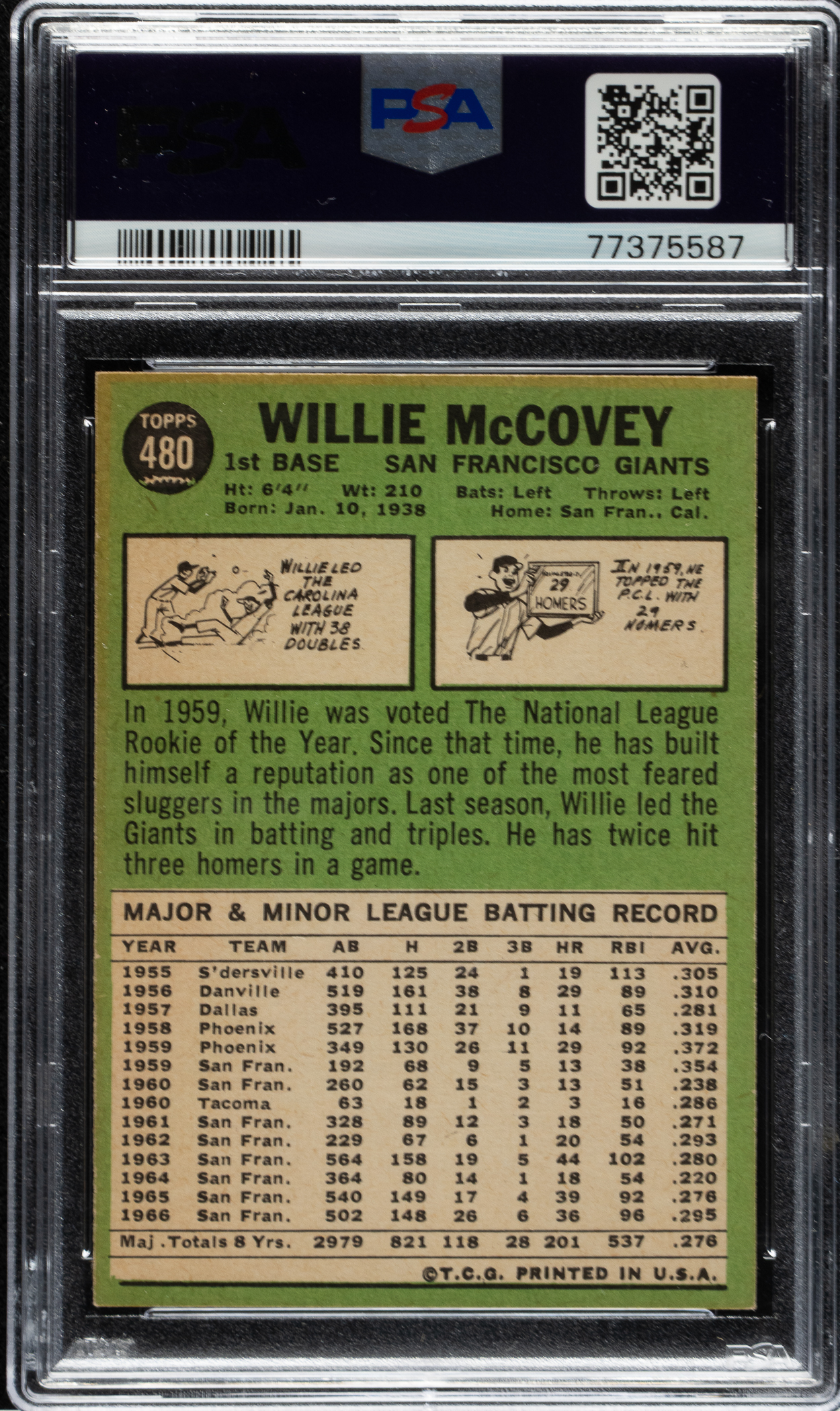 Lot # 2072: 1967 Topps #480 Willie McCovey PSA NM-MT 8