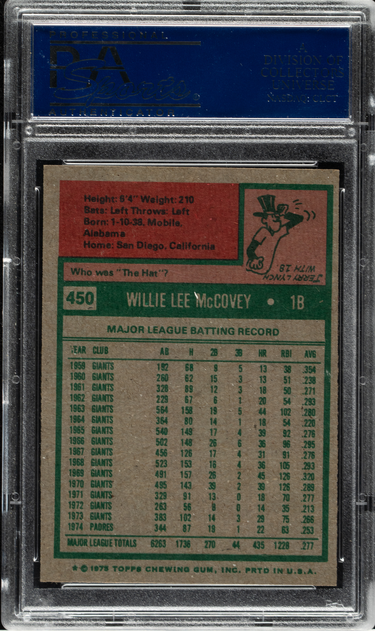 Graded NM-MT 8 by PSA. San Diego Padres Hall of Famer Willie McCovey.