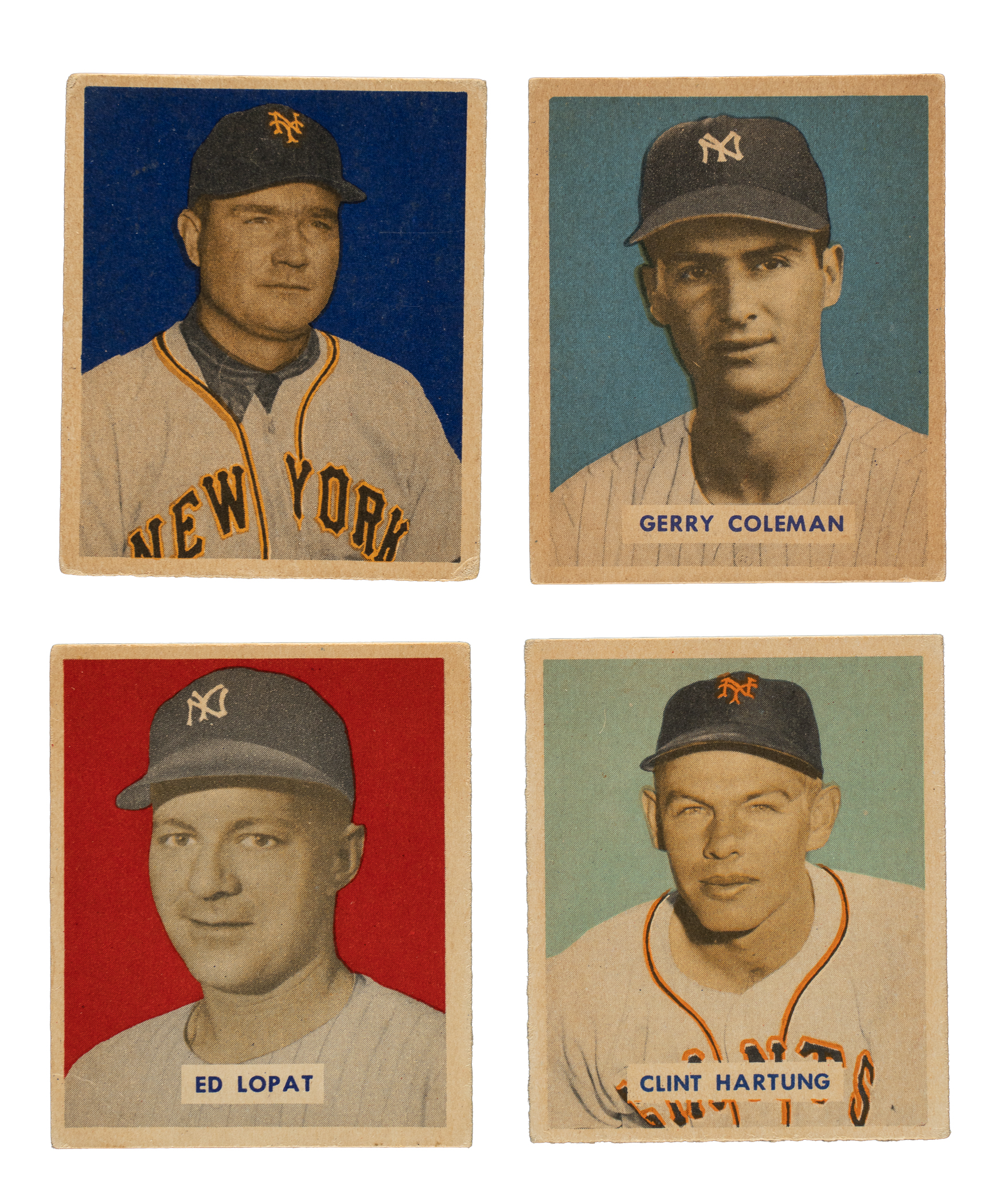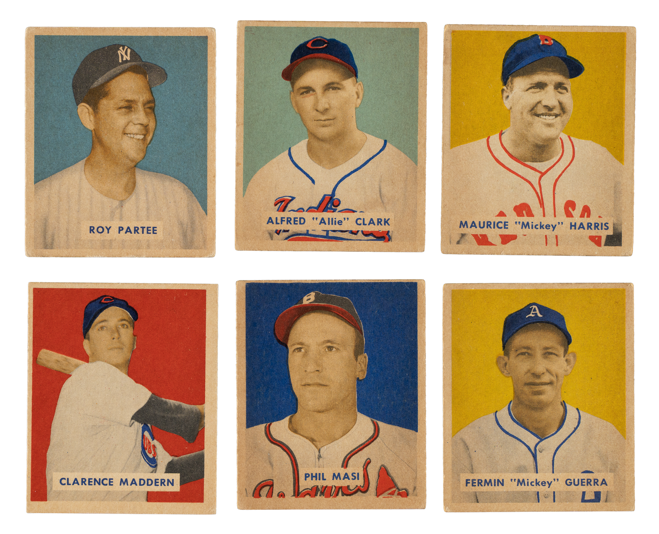 Presented is a very attractive and mostly mid-grade partial set of 1949 Bowman baseball consisting of 119 different cards (out of 240 in the set). Included are forty-two cards from the high-number series (#145-240). Condition is 18% Ex or slightly better, 68% Vg to Vg-Ex, and 14% lesser. Keys: #85 Mize NNOF (Vg), 225 Coleman RC (Vg+), and 229 Lopat RC (Vg). Missing the following 121 cards for completion: #1 Bickford, 3, 4, 6, 7, 9, 10, 11 Boudreau, 12, 13, 14, 15, 16, 18, 19, 20, 21, 22, 23 Doerr, 24 Musial, 25, 26 Kell, 27 Feller, 28, 29 Kiner, 30, 33 Spahn, 36 Reese, 38, 40, 41, 42, 43, 46 Roberts, 47, 50 Robinson, 52, 53, 54, 60 Berra, 63, 64, 65 Slaughter, 66, 67, 70 Furillo, 73, 82, 84 Campanella, 90, 91, 98 Rizzuto, 99, 100 Hodges, 110 Wynn, 111 Schoendienst, 119, 120, 121, 125, 127, 128, 129, 130, 132, 137, 144, 145, 146, 147, 148, 156, 157, 158, 159, 160, 161, 162 Roe, 163, 164, 165, 166, 167, 168, 169, 170, 171, 174, 175 Appling, 176, 177, 178, 180, 185, 190, 194 Branca, 197, 199, 203, 204, 209 Keller, 210 Gordon, 211, 213, 214 Ashburn, 215, 216, 217, 219 Trucks, 220, 221, 224 Paige, 226 Snider, 230, 232, 233 Doby, 235, 237, 238 Lemon, 239, and 240. Total: 119 cards. The size/weight of this item requires that there will be an additional shipping charge for this lot.