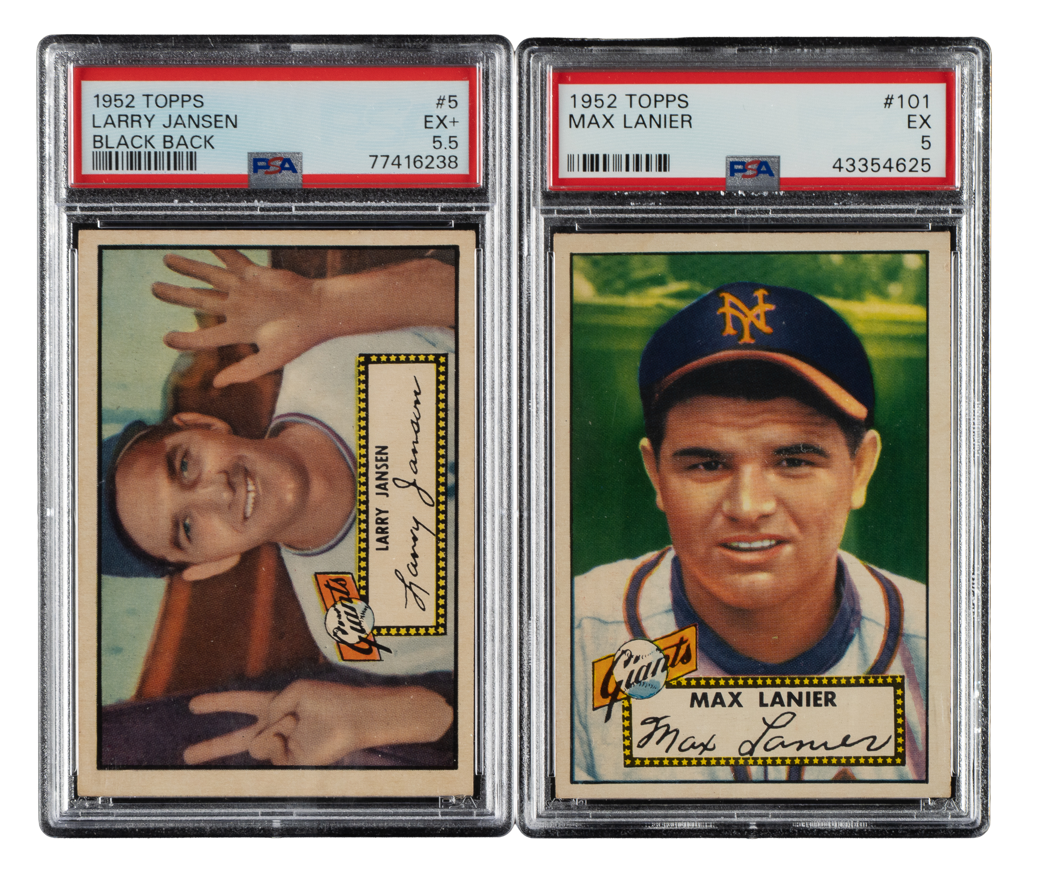 Pair of 1952 Topps cards, both graded and encapsulated by PSA. This pair consists of the following: #5/black back (EX+ 5.5) and 101 (EX 5). Total: 2 cards.
