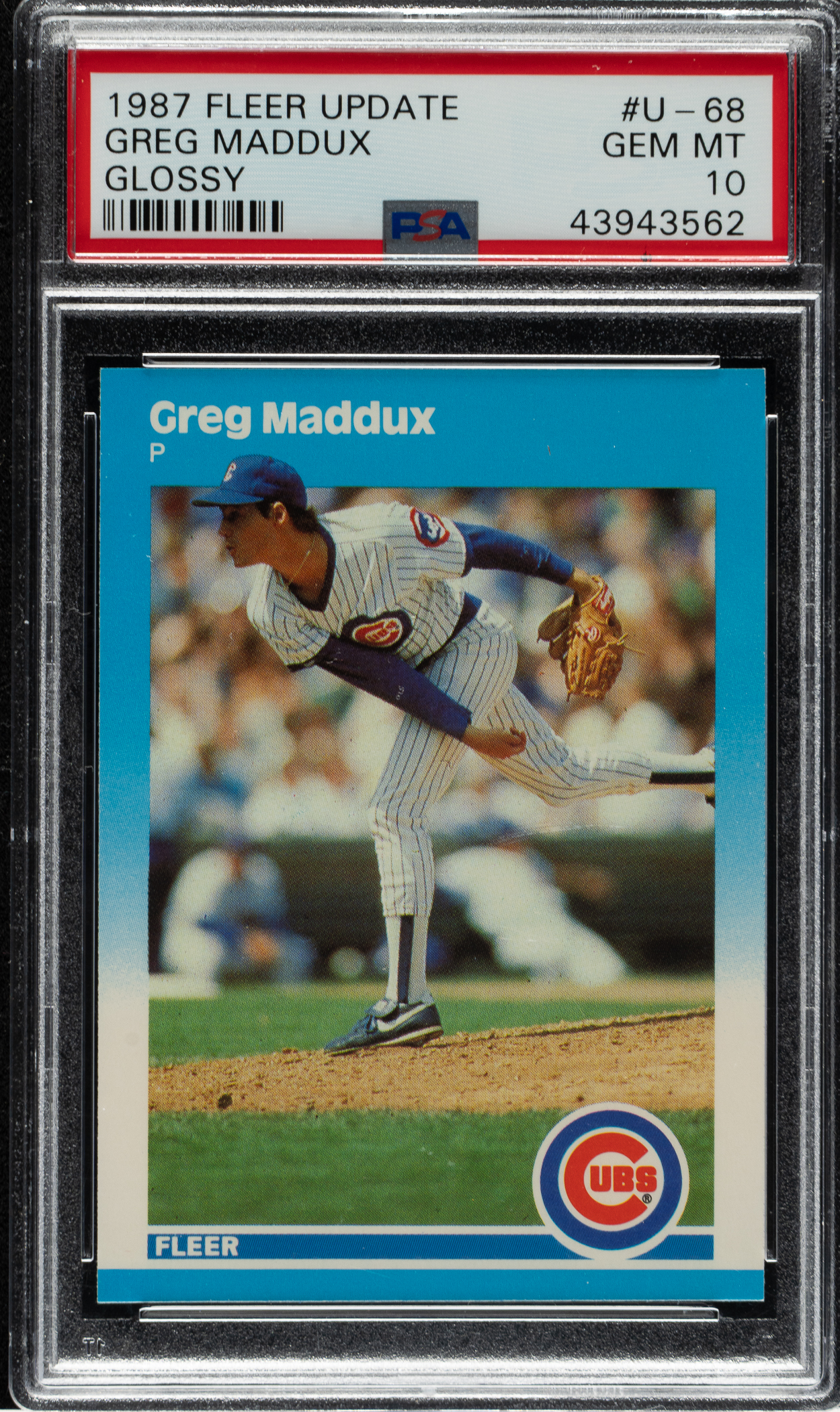 Lot # 2232: 1987 Fleer Update #U-68 Greg Maddux Rookie Glossy PSA GEM MINT 10