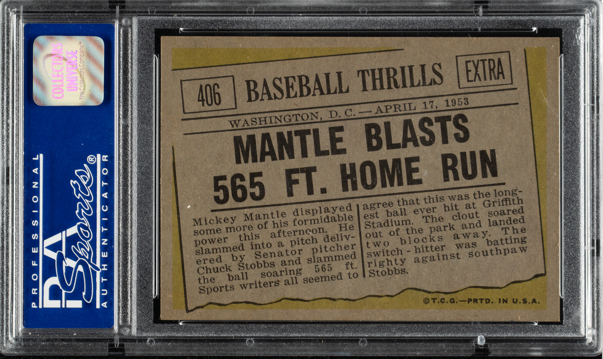 Graded NM-MT 8 by PSA. New York Yankees Hall of Famer Mickey Mantle.