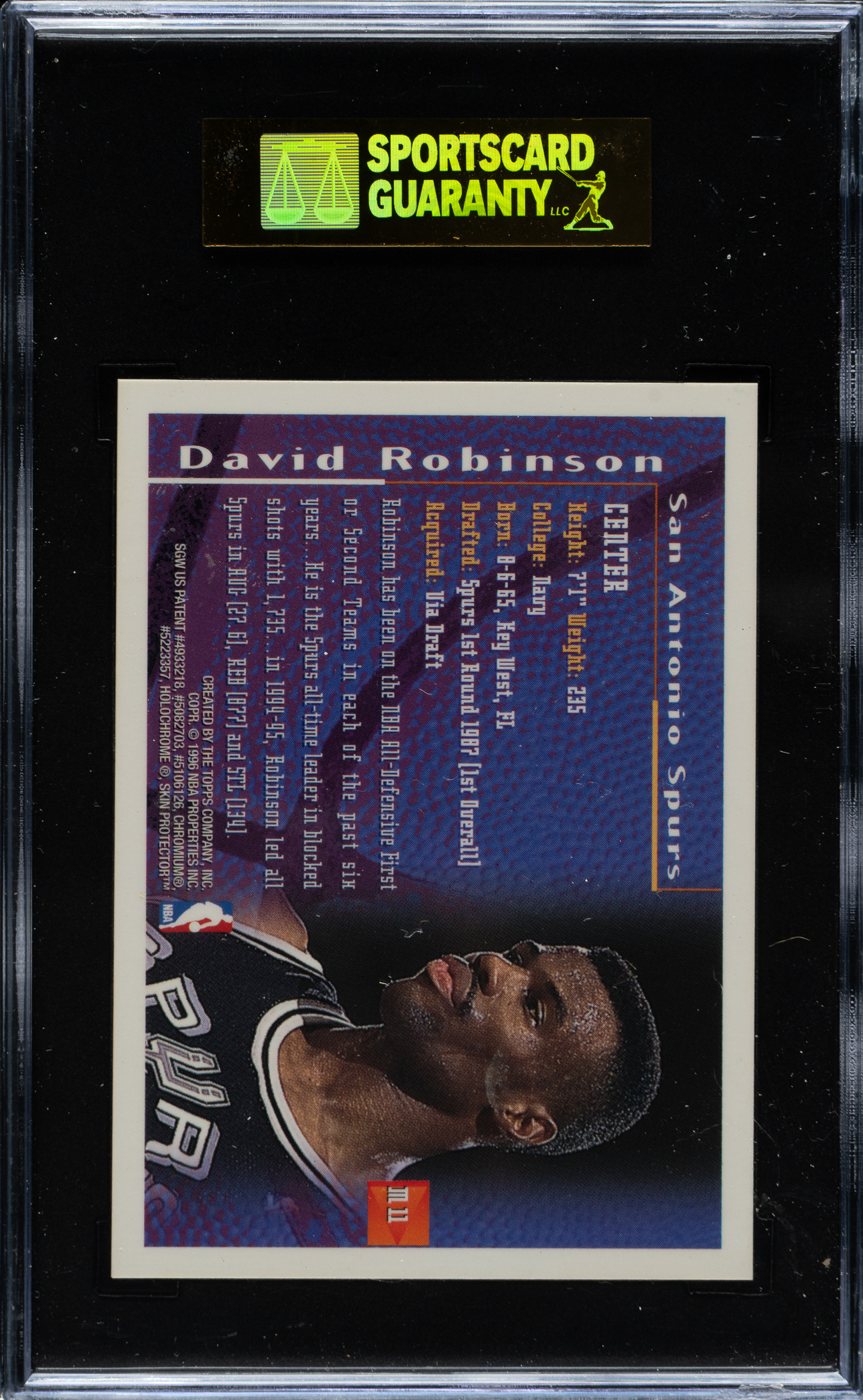 Graded MINT 96 by SGC. San Antonio Spurs basketball Hall of Famer David Robinson.