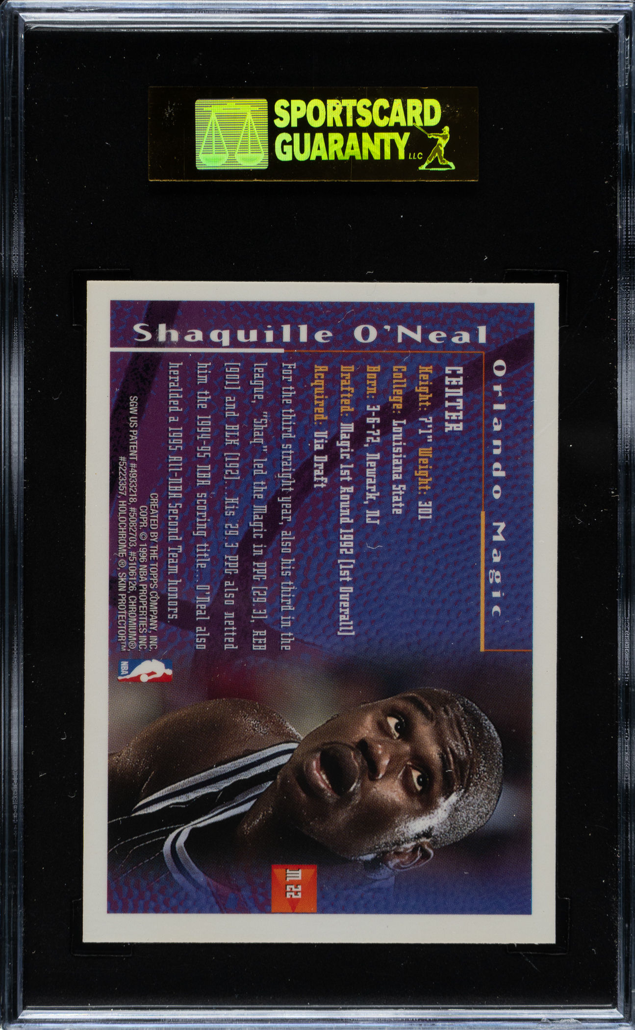 Graded NM/MT+ 92 by SGC. Orlando Magic basketball Hall of Famer Shaquille O'Neal.