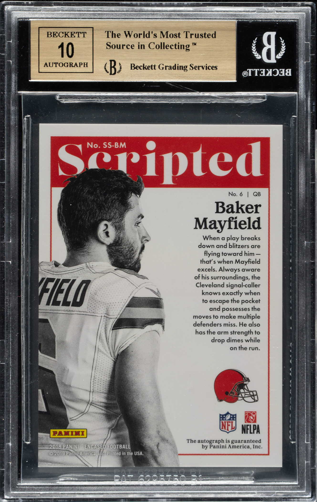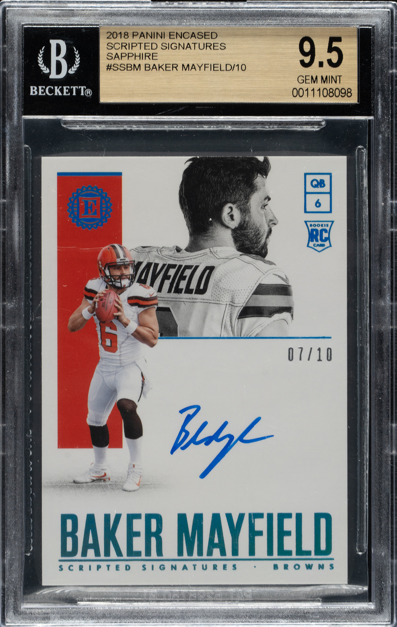 BGS has encapsulated the card, grading the signature GEM MINT 10 and the card GEM MINT 9.5. Cleveland Browns.